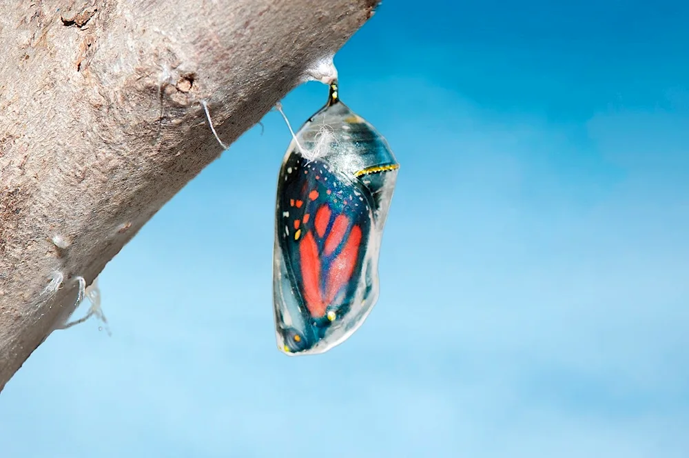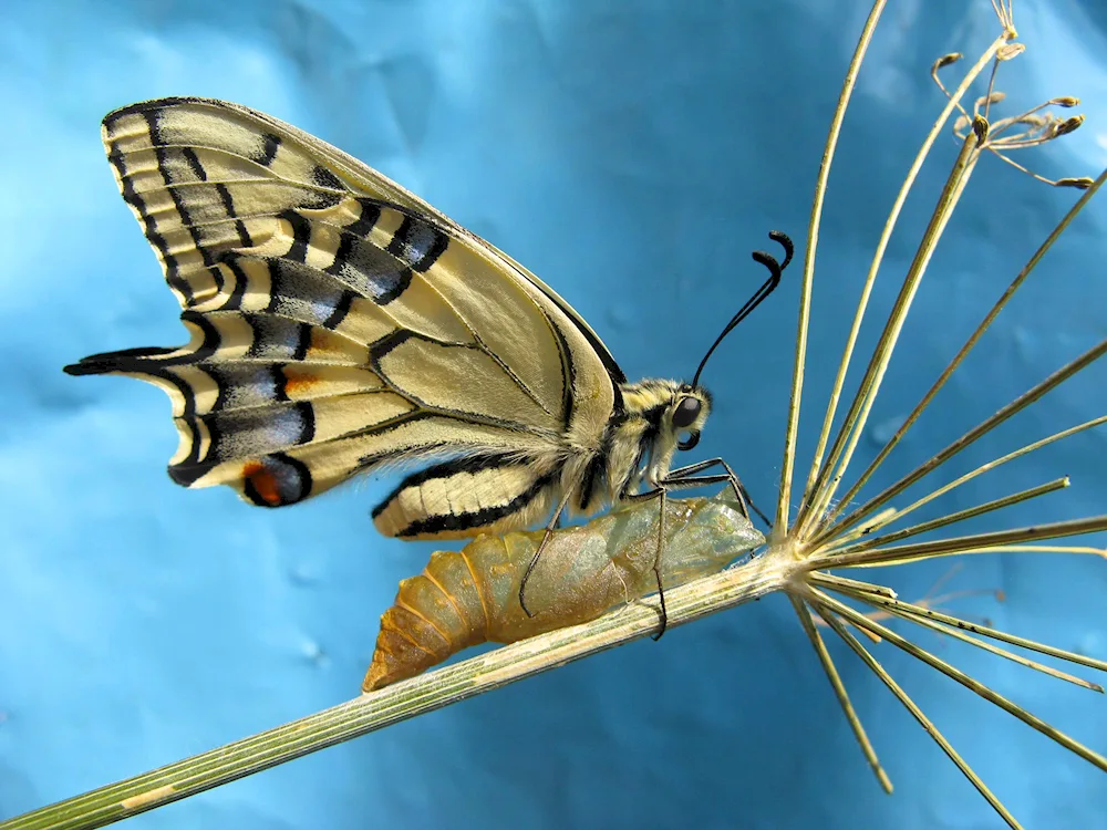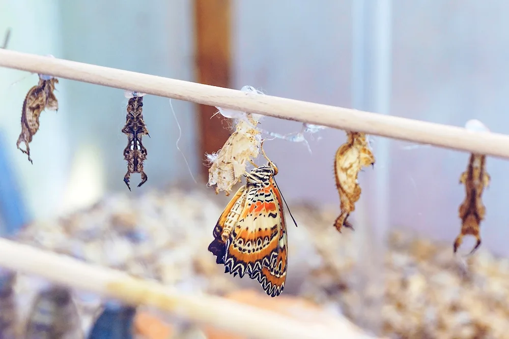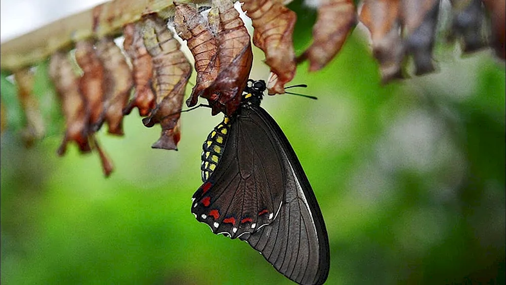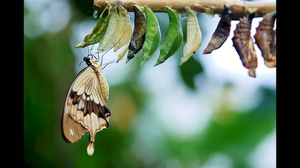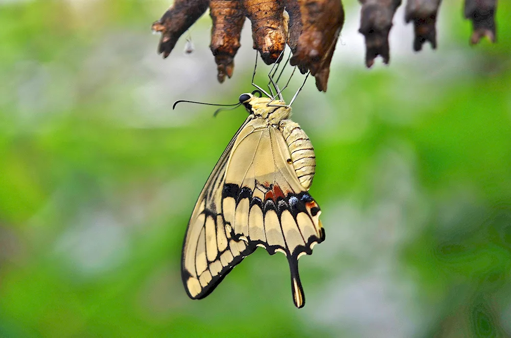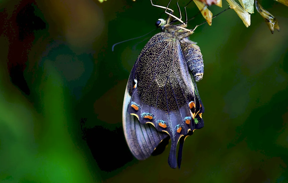 Photos of a stunning butterfly emerging from its chrysalis, showcasing its vibrant colors and delicate wings. Witness the magical transformation from a simple cocoon to a graceful winged creature in these beautiful images.