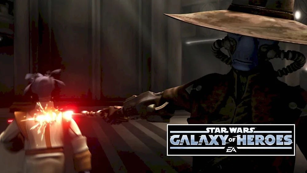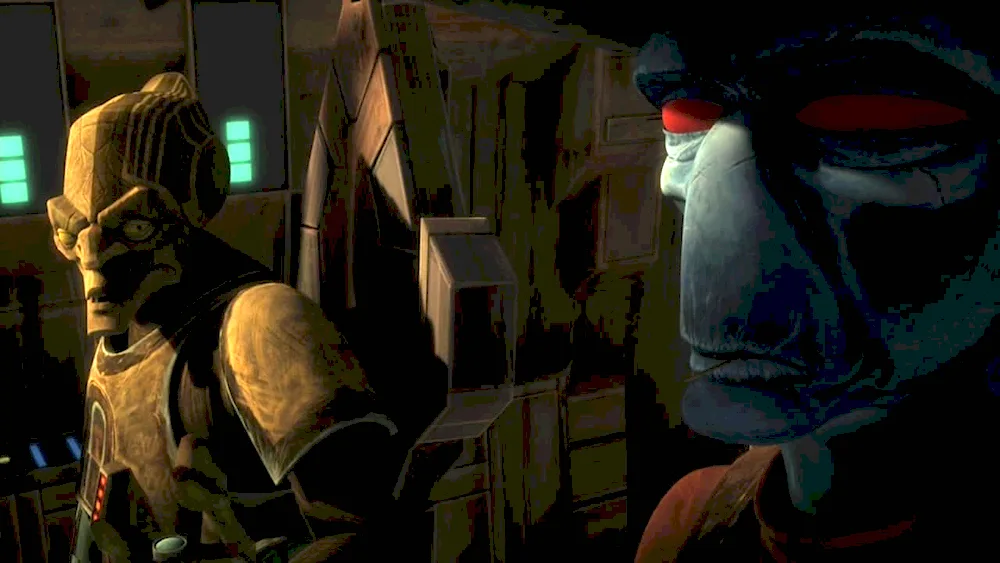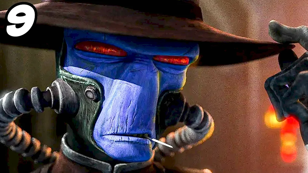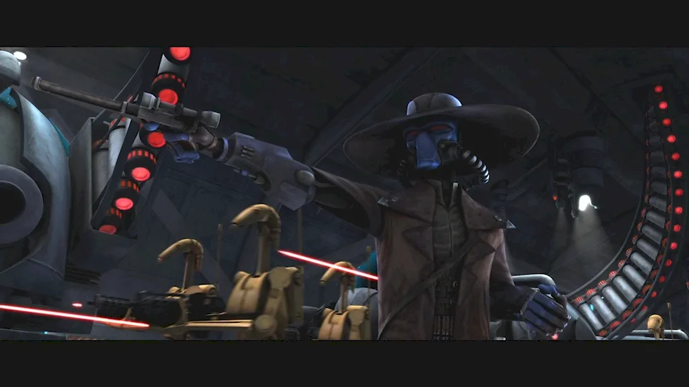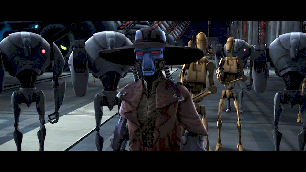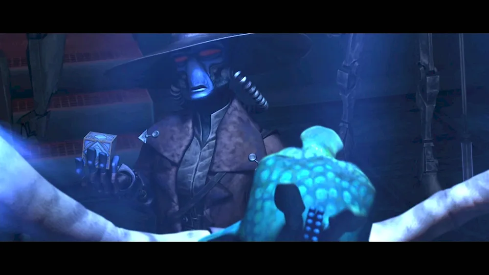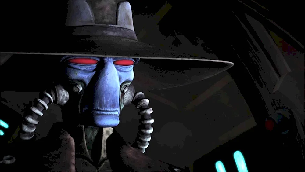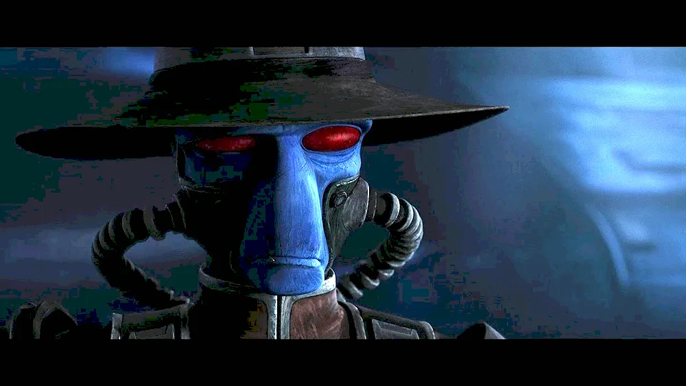 Check out these images of the infamous bounty hunter Cad Bane from the animated series Star Wars: The Clone Wars. You can see him in action with his signature wide-brimmed hat and blue skin, as he takes on various missions across the galaxy.