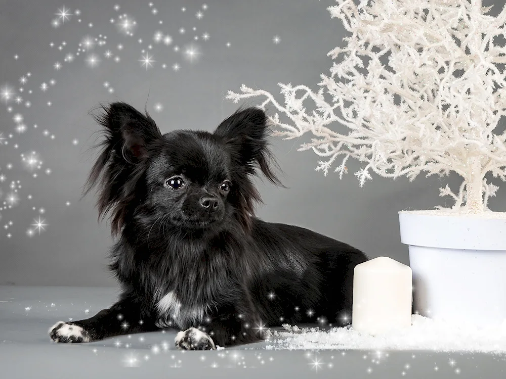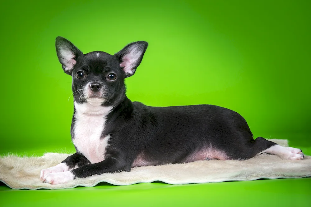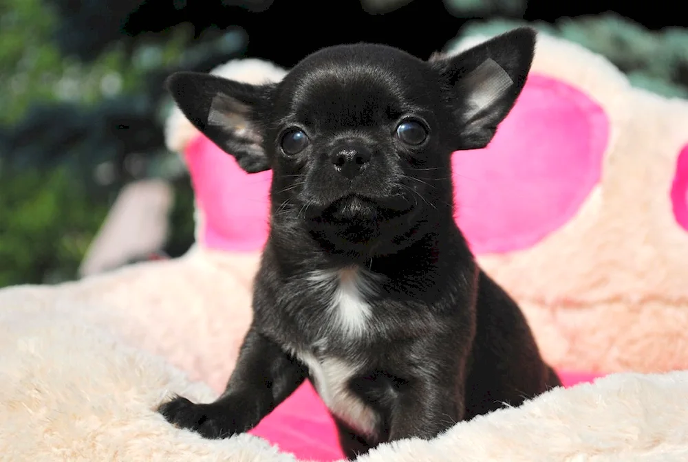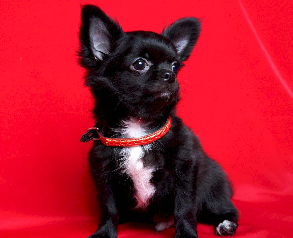Chihuahua black Chihuahua with a black coat: Check out these adorable photos of tiny black Chihuahuas looking cute and playful. You'll love how their shiny black fur contrasts with their big, expressive eyes.
