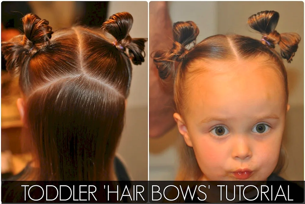 Children’s Hairstyle Bow Hair Photos of adorable little girls with bow hair accessories in their hairstyles. The bows come in different sizes, colors, and materials, adding a cute and playful touch to the children's hairstyles.