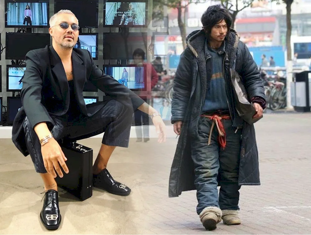Images depicting the high-end homeless fashion trend, showcasing individuals wearing designer garments with tattered and distressed elements, creating a juxtaposition between luxury and destitution. These photos capture the unique aesthetic of the clochard deluxe style, blending high fashion with streetwear in a provocative and thought-provoking way.
