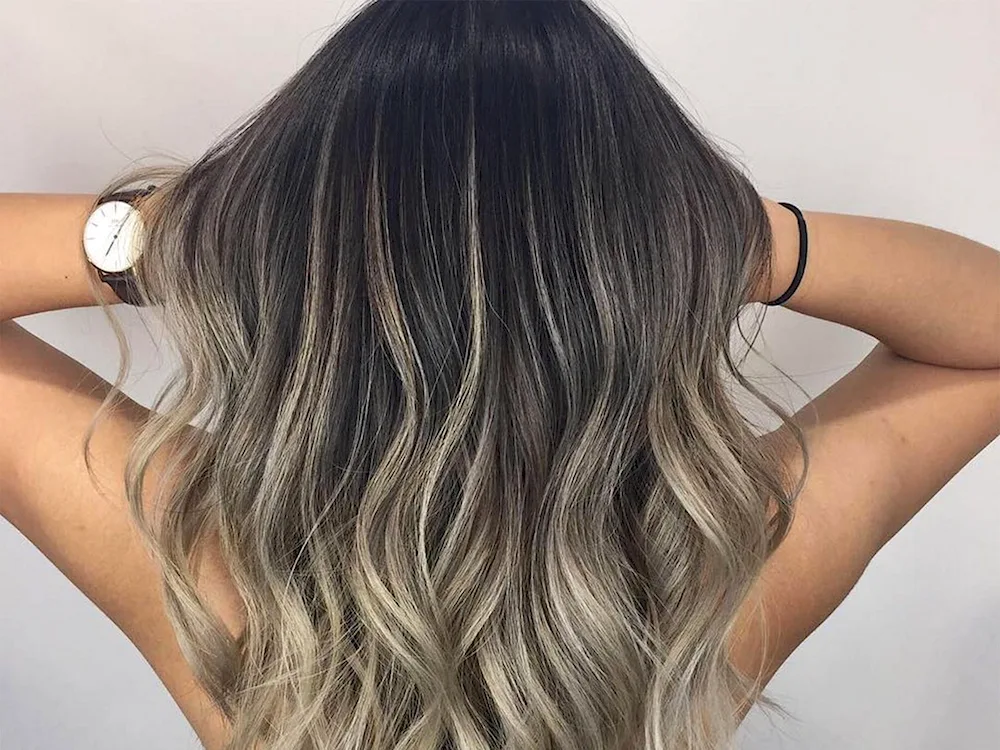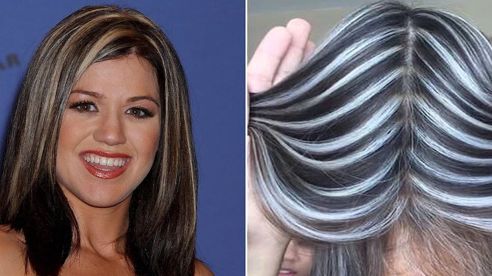 Photos showcasing icy highlights on deep brunette hair, creating a striking contrast and adding dimension to the overall look. The dark base allows the cool tones to pop, resulting in a chic and modern hairstyle perfect for those who want a touch of edginess.