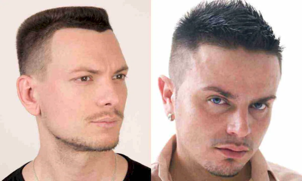 Fade cropped haircut      Half box with Mohawk      Haircuts with baldness      Bobrick half box      David Beckham 2022      British undercut      Haircuts with baldness      Ryan Reynolds 2019      Box and half box      Southside fade      Men’s hairstyles with baldness      Hairstyles for men with baldness on forehead      Ofyan Reynolds hairstyle      Men’s baldness hairstyles      Tom Hardy undercat      Andercat Canadian box half-box.      Crop fade 2022      Ryan Reynolds haircut      Receding Hairline      Fade cropped haircut      Andercat man bun      Ryan Reynolds half box      Fade half box      Colin Farrell undercut      Ryan Reynolds Deadpool hairstyle