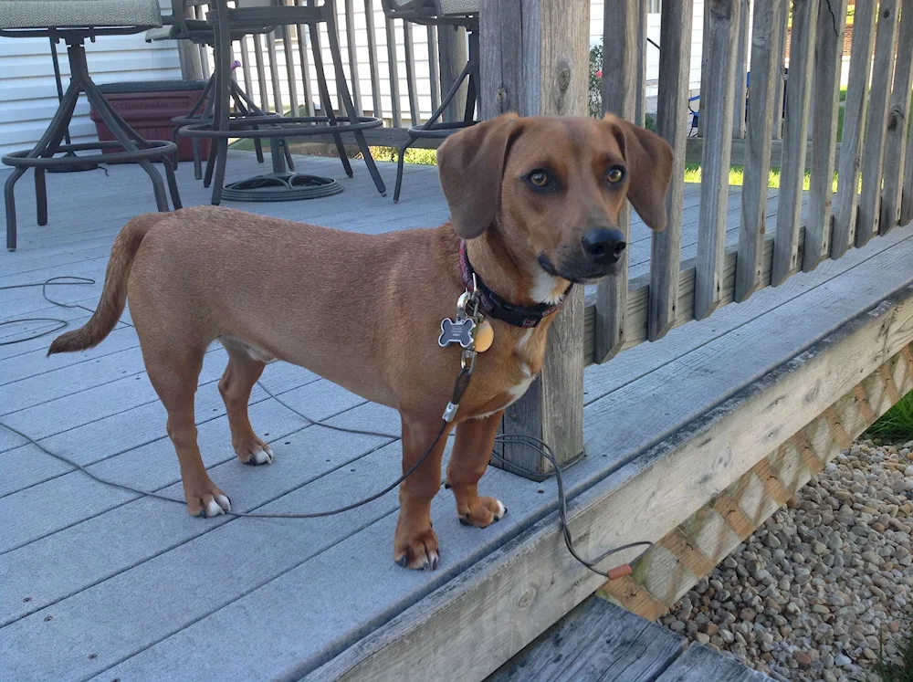 Dachshund mix Check out these adorable pictures of a dachshund crossbreed! The images showcase the unique characteristics and playful nature of these cute mixed-breed dogs.
