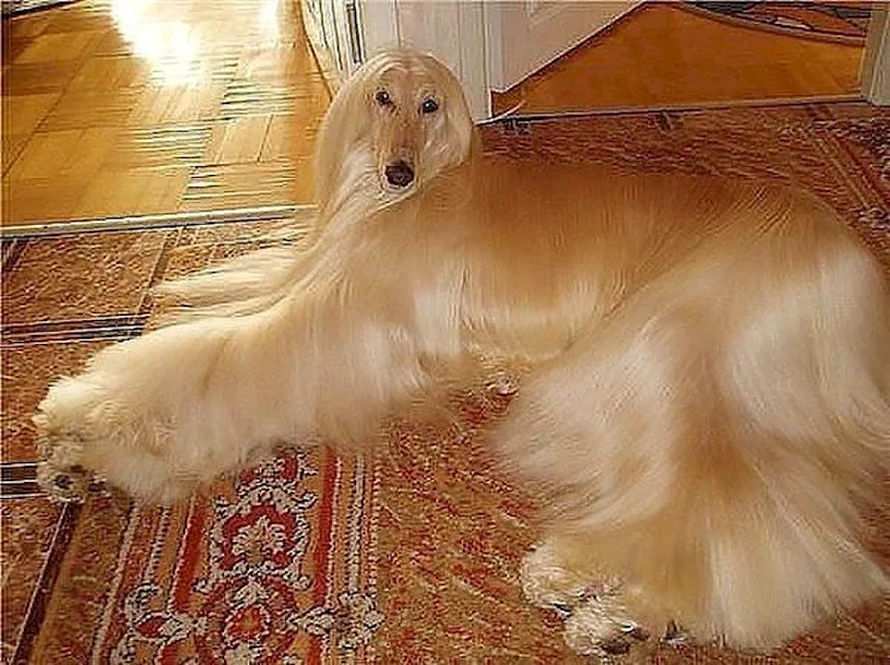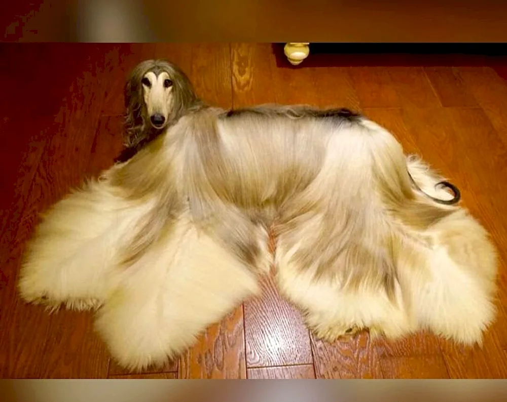 Photos of a unique dog breed with long hair instead of fur. These images showcase the beautiful and fluffy coat of these unusual dogs.