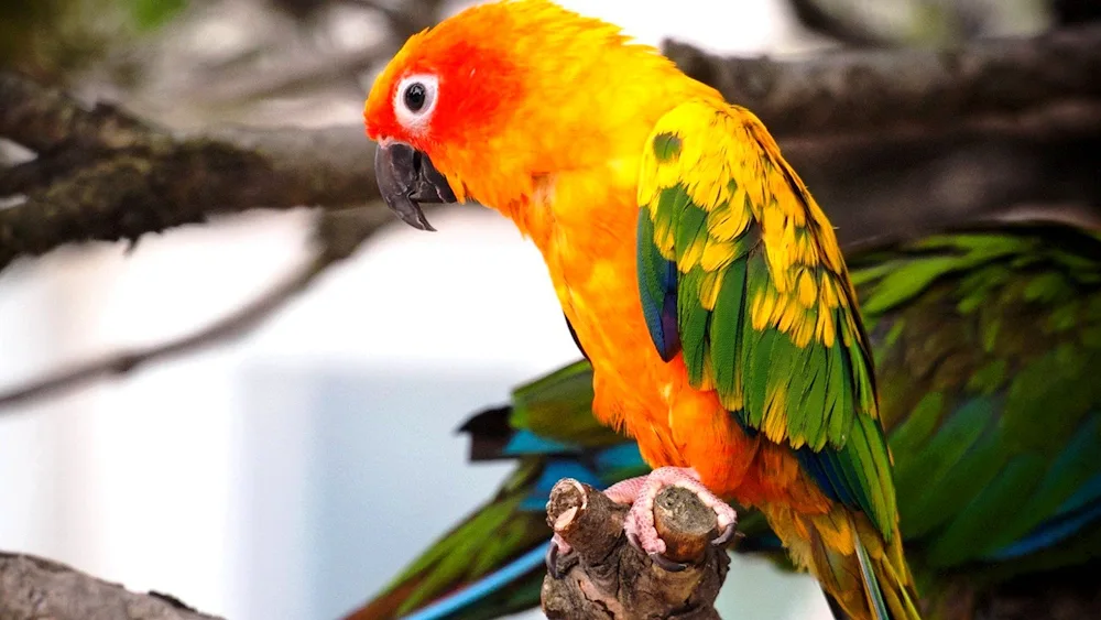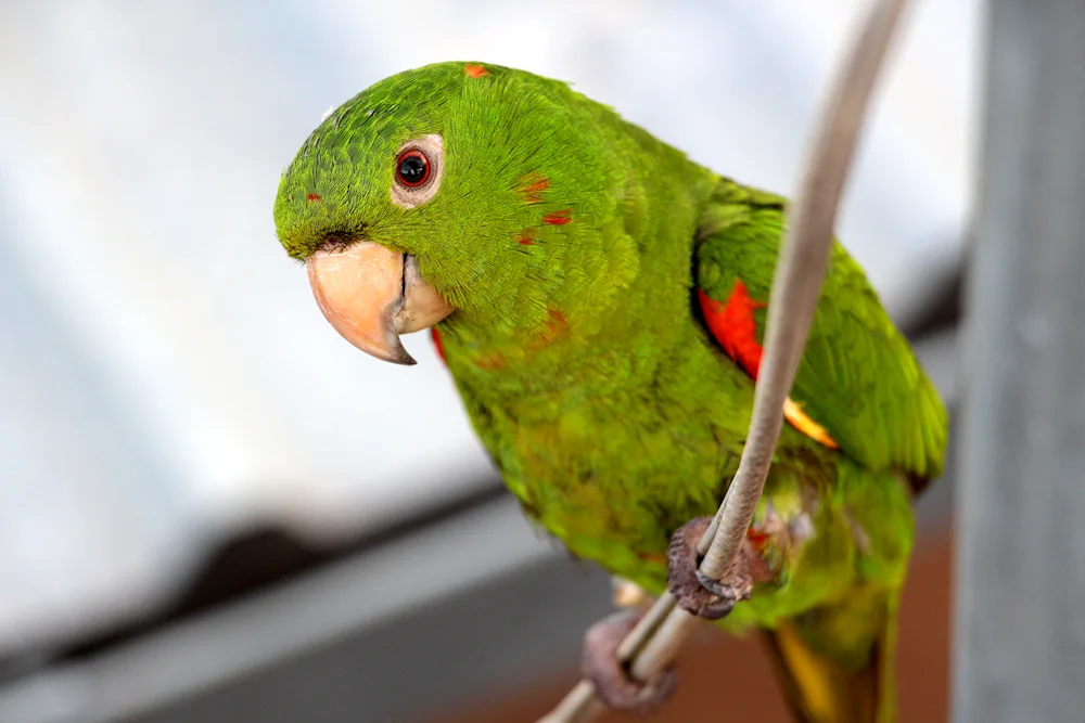 Different types of pet parrots showcased in vibrant colors and unique feather patterns; a variety of breeds such as macaws, cockatoos, and conures are featured in charming and playful poses captured in a series of stunning photographs. Explore the beauty and diversity of domestic parrot breeds in these captivating images that highlight their colorful plumage and endearing personalities.