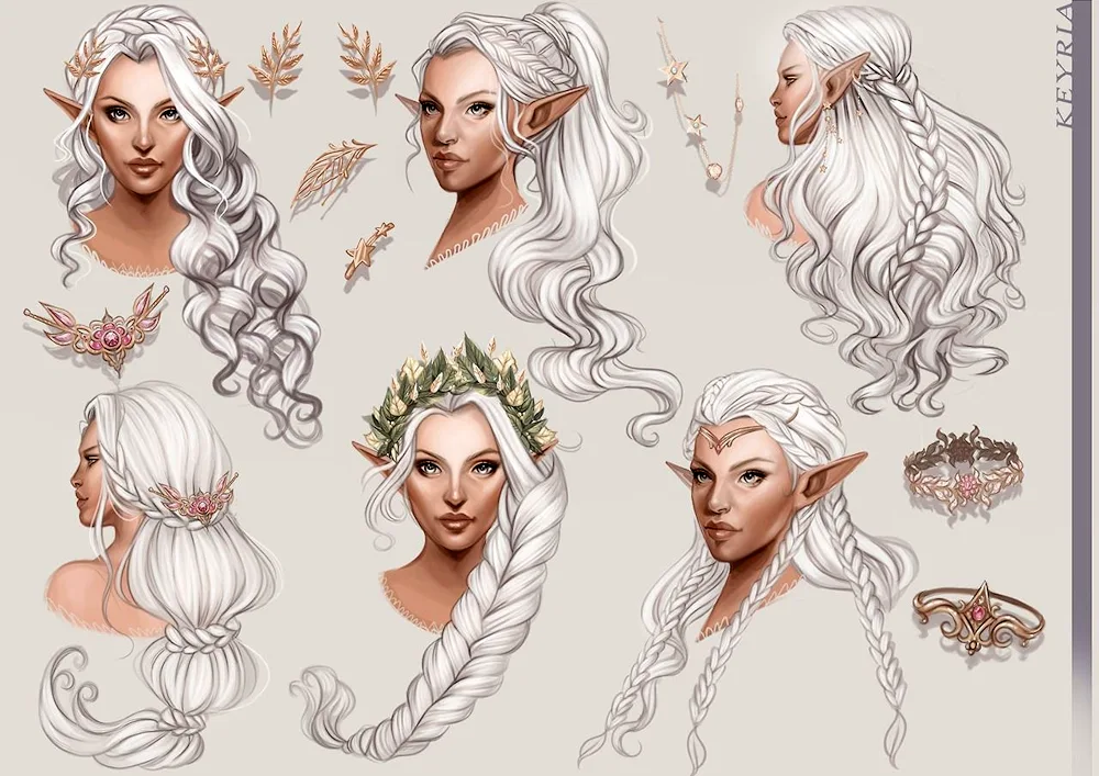 Elven hairstyles for long hair Examples of hairstyles fit for an elven queen with long flowing hair. From intricate braids to ethereal waves, these images showcase the beauty and elegance of elven-inspired hairstyles for those with lengthy locks.