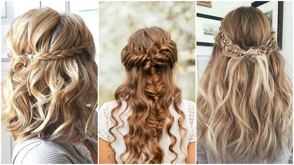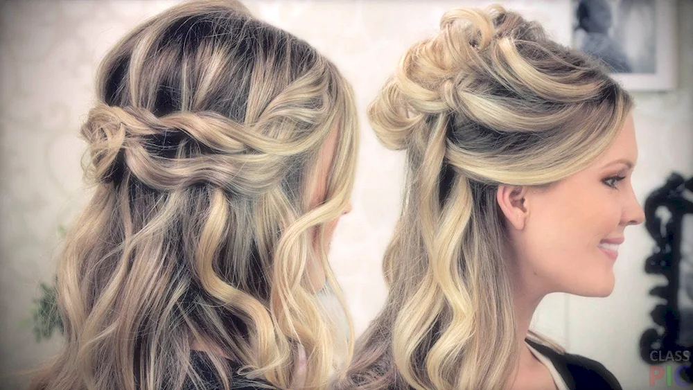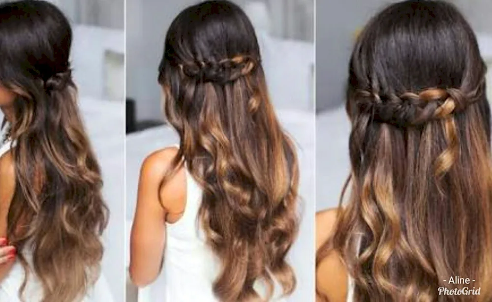 Evening hairstyle with loose hair Check out these stunning photos of a relaxed evening hairdo with flowing locks for your next special event. Get inspired by the effortless yet glamorous hairstyles showcased in these images.