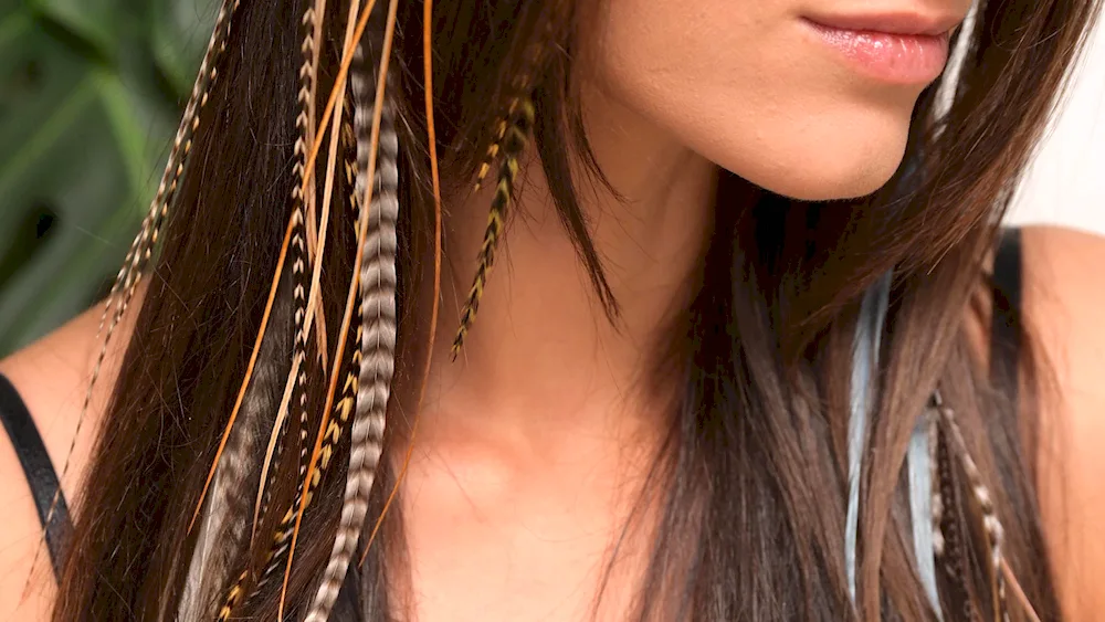 Check out these stunning images of delicate feathers contrasting beautifully with dark hair, adding a touch of elegance and whimsy to any look. The intricate details of the feathers against the rich color of the hair create a mesmerizing visual effect that is sure to captivate you.