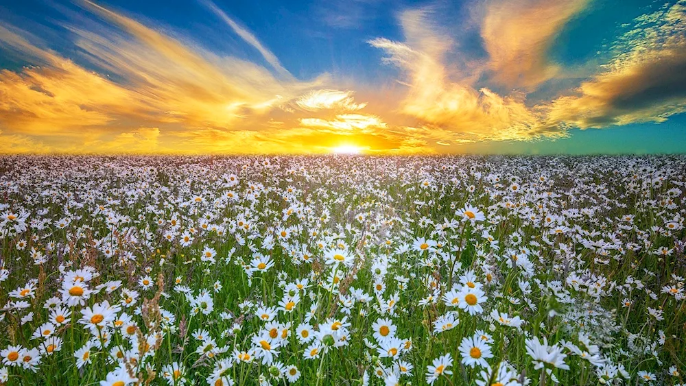 Check out these beautiful images capturing a vast expanse of bright yellow and white daisies swaying in the wind, creating a serene and peaceful atmosphere. The vibrant colors and delicate petals make these pictures truly enchanting and perfect for brightening up any space.