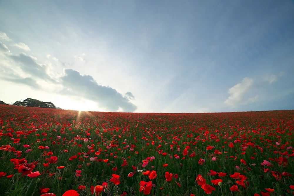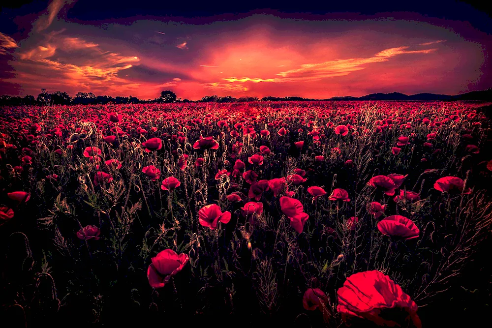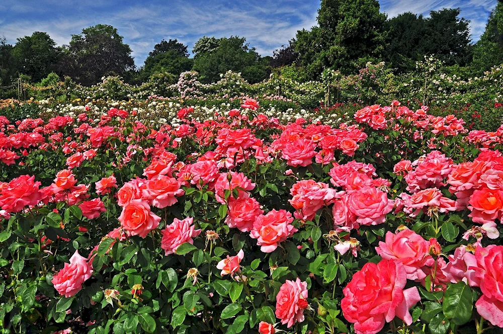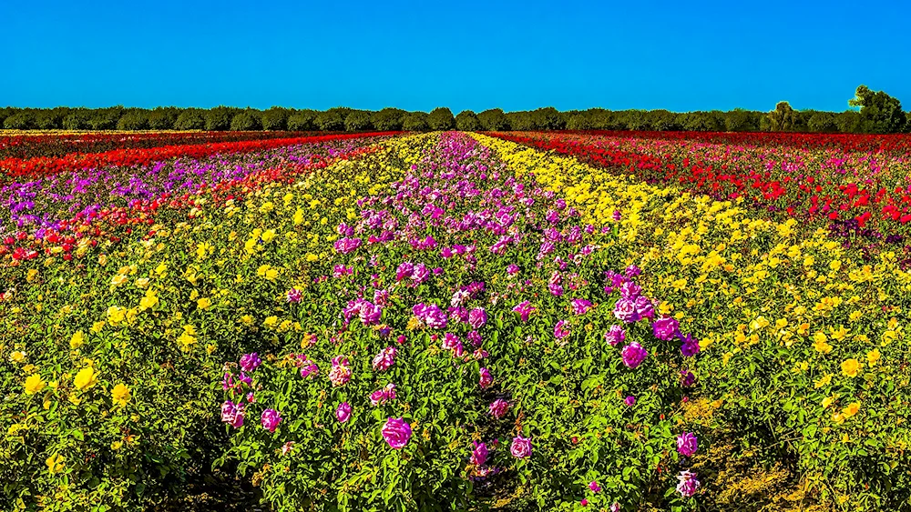 Field of roses Check out these stunning images of a sprawling meadow filled with vibrant red roses, their petals shimmering in the sunlight. The field seems endless, creating a breathtaking sea of beauty that will surely take your breath away.