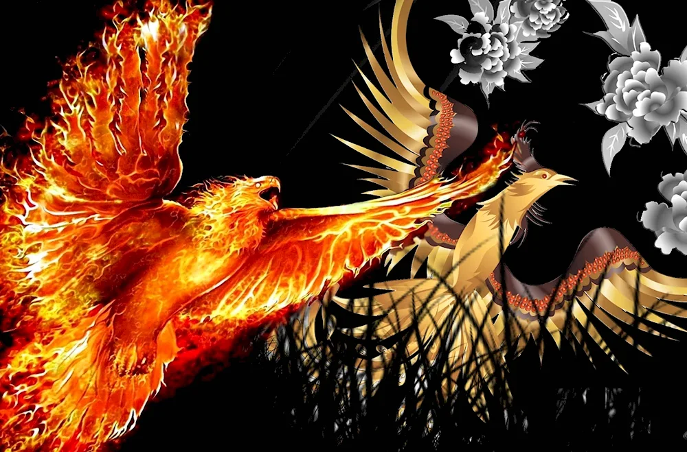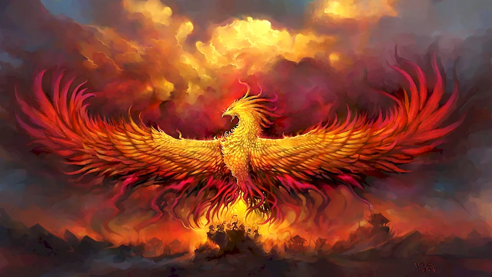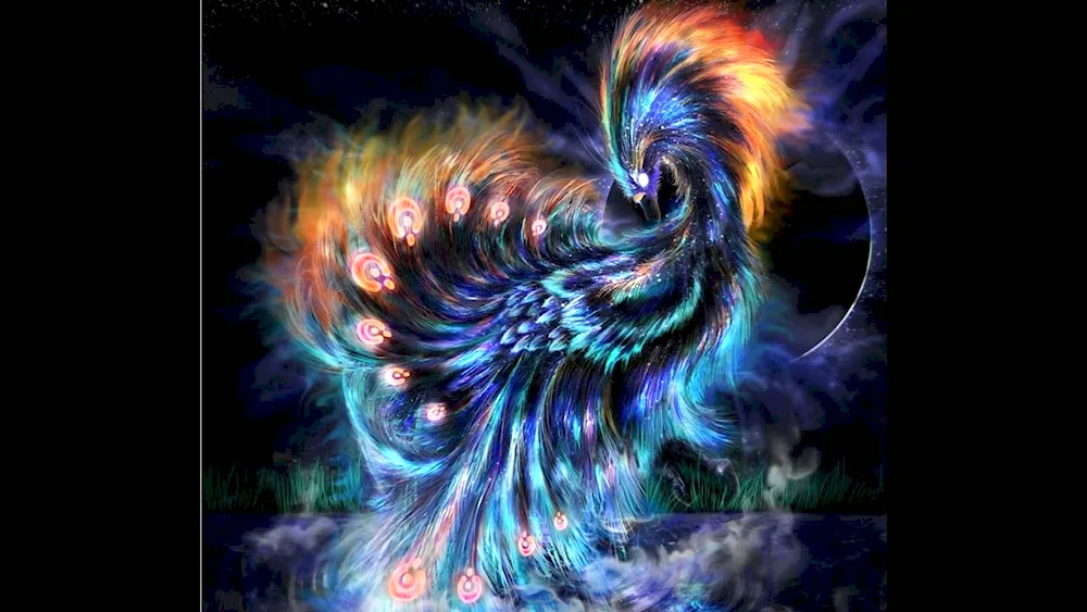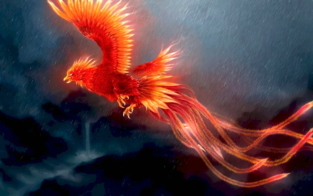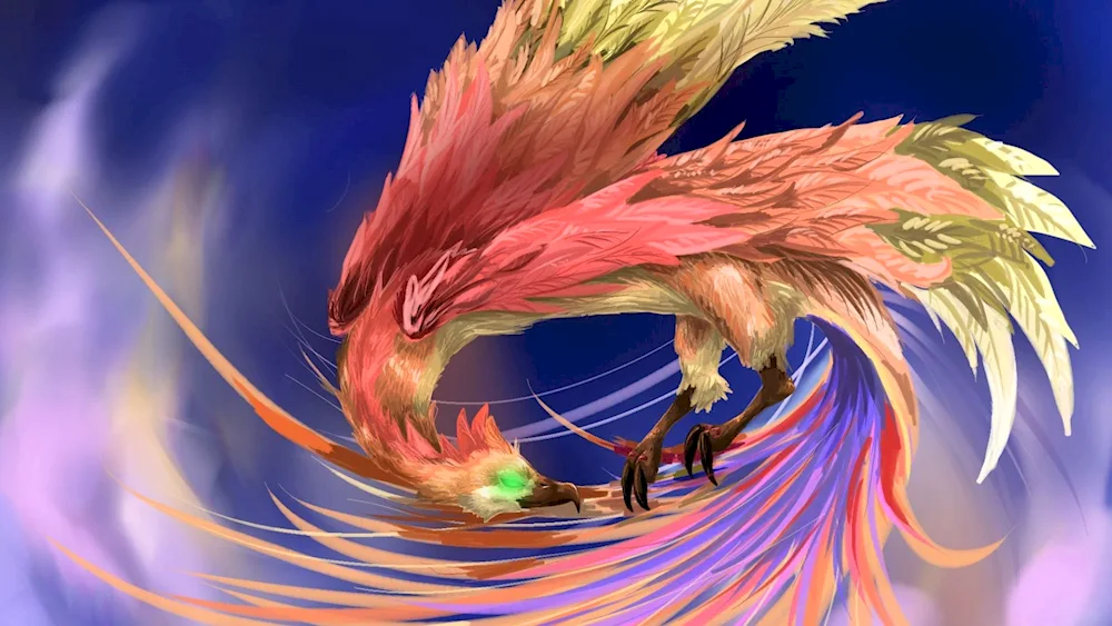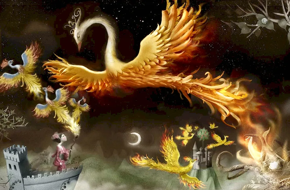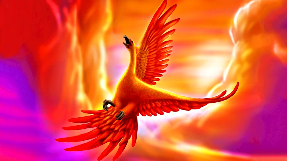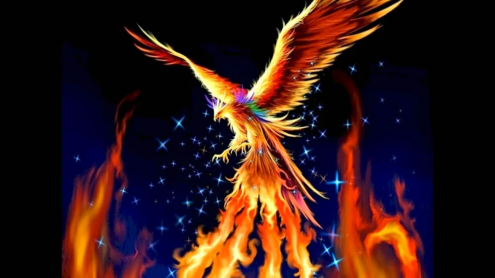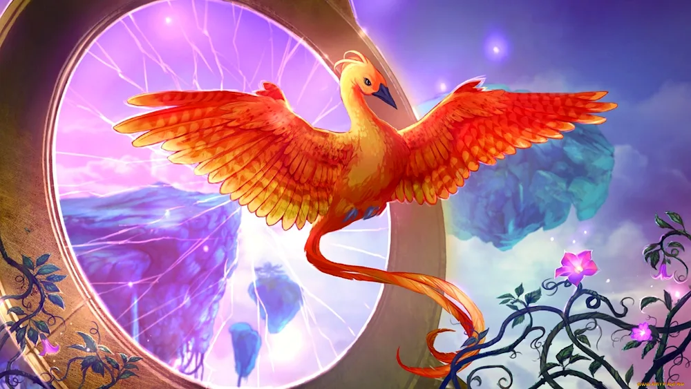 Here are some photos of the mythical Firebird: one shows a majestic bird with fiery plumage soaring through the sky, another depicts a colorful illustration of the creature, and a third image captures a mystical figure holding a flaming bird in their hands. Enjoy these captivating representations of the legendary Firebird!