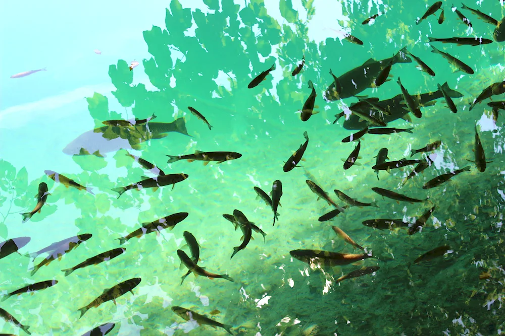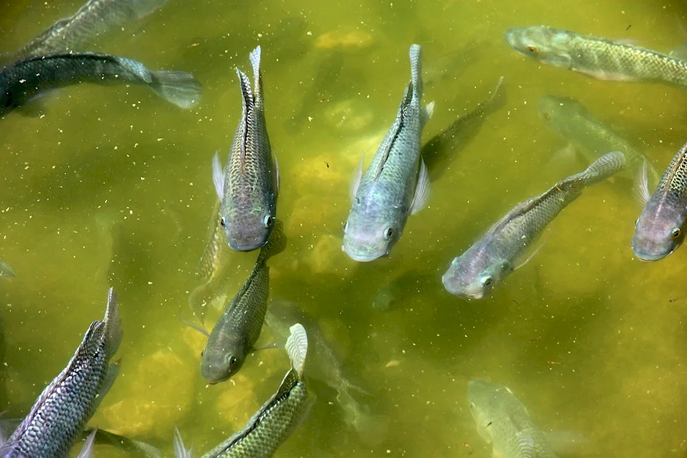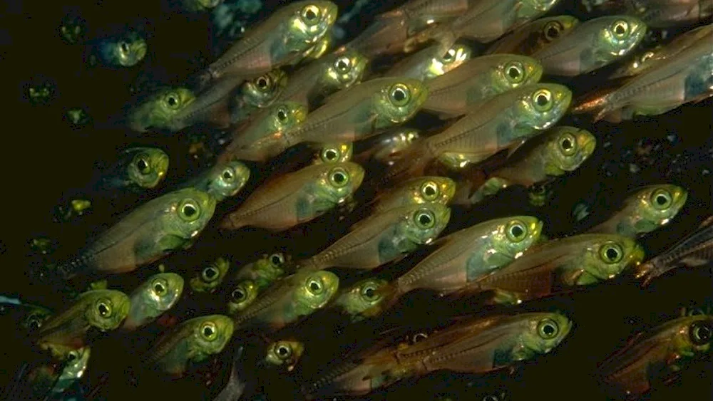 Fish fry Check out these amazing photos of a gathering of young fish enjoying their fry stage. The images show the tiny fish fry swimming in schools and exploring their underwater habitat.