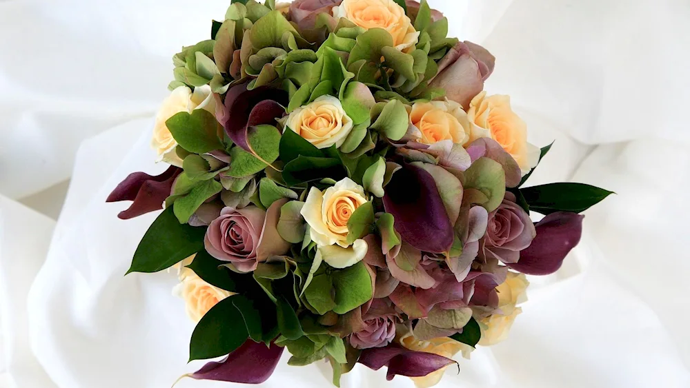 Bouquets of gerberas with chrysanthemums and alstroemeria