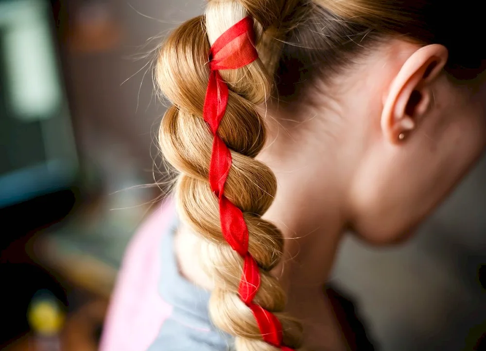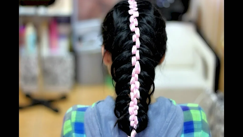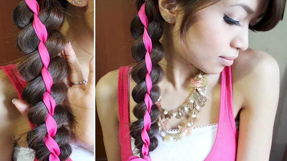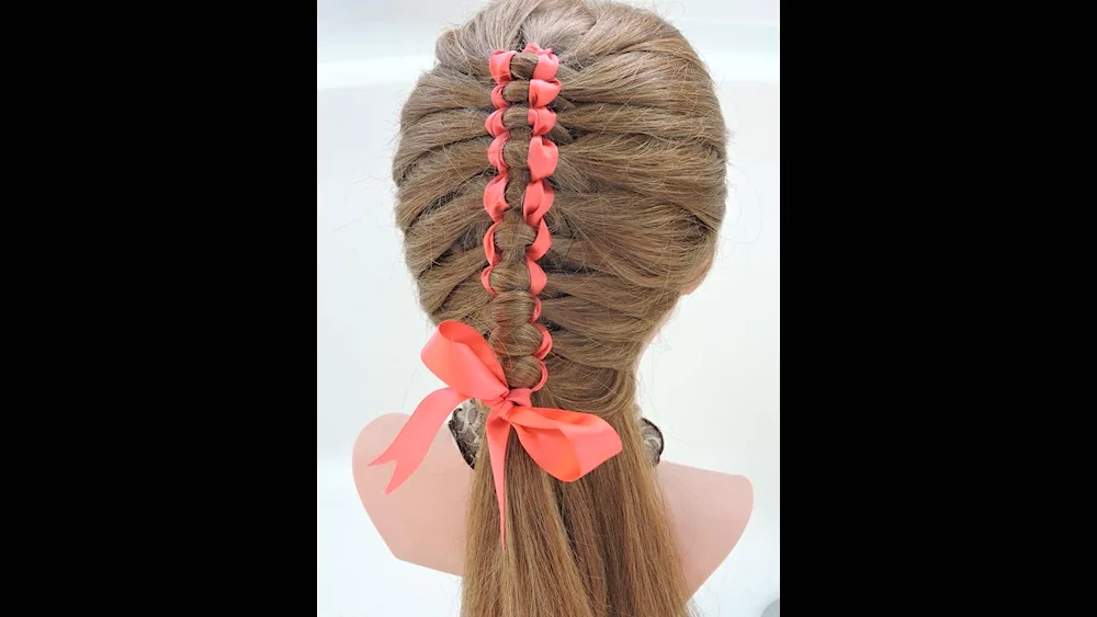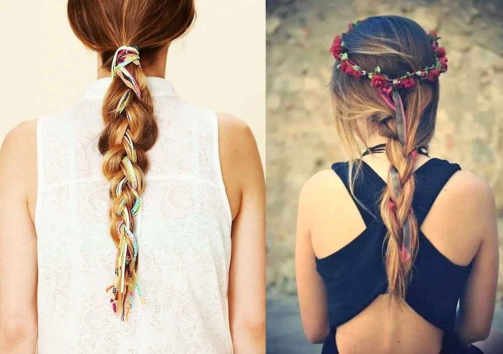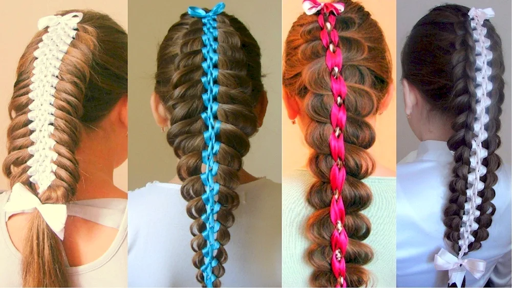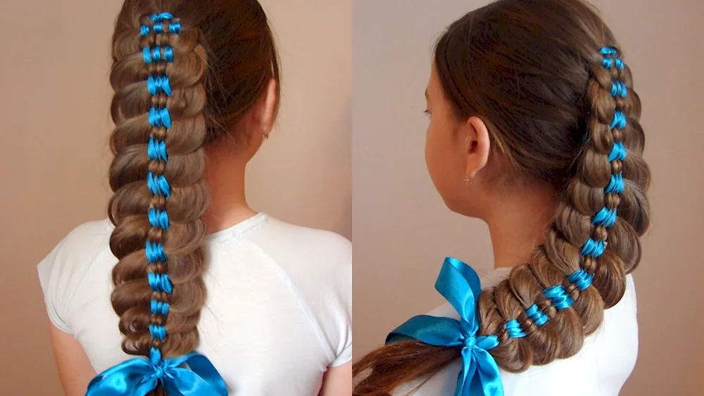 Ribbon braid hairstyles with ribbons for a girl with long hair