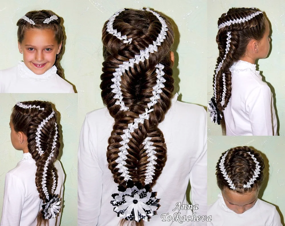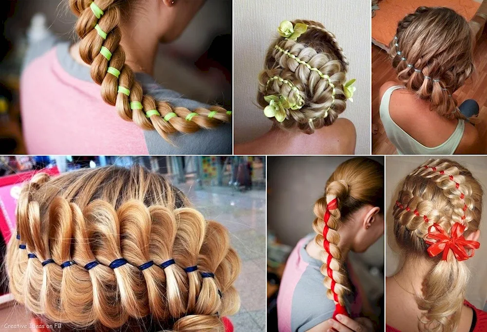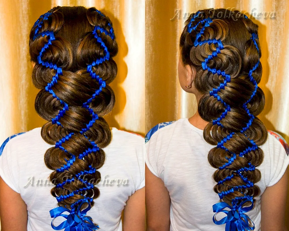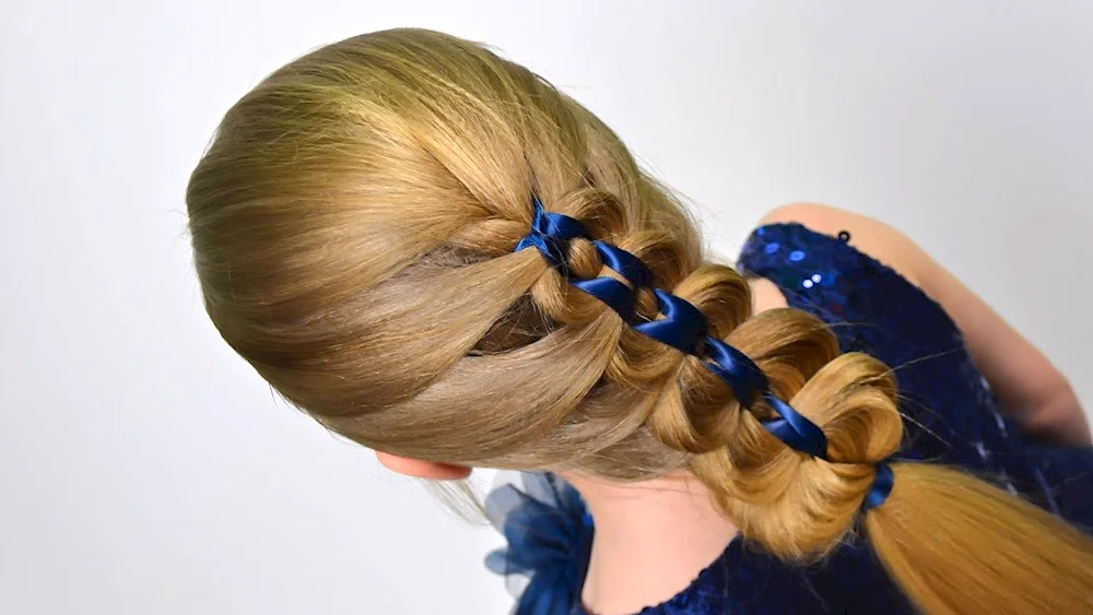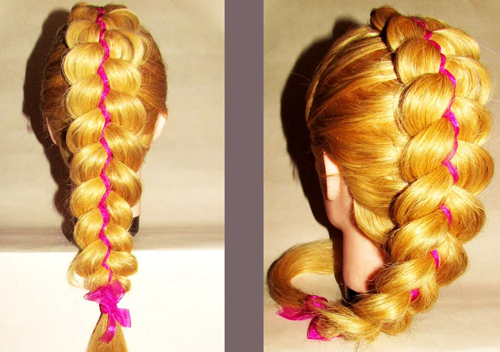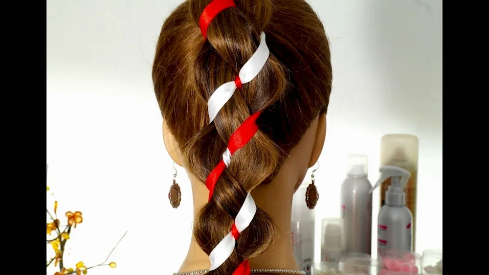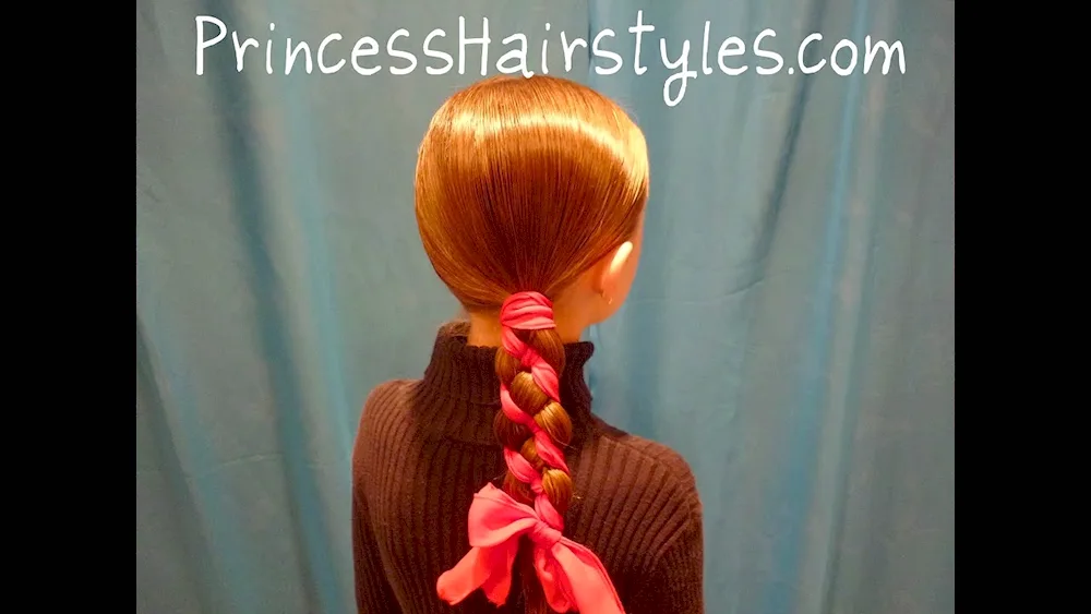 Ribbon braid hairstyles with ribbons for a girl with long hair
