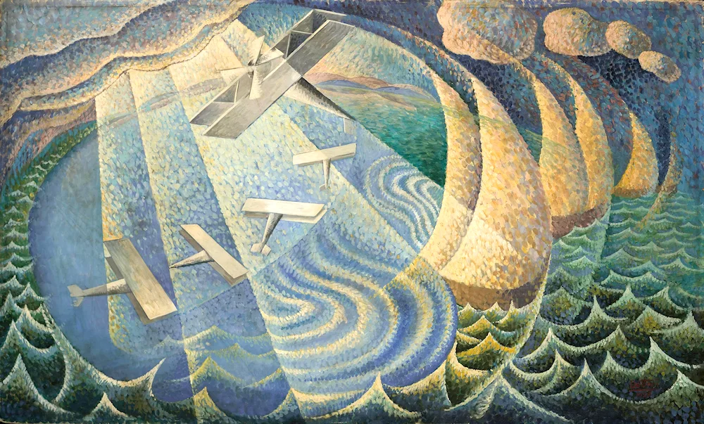 Futurism painting Check out these striking images of paintings from the Futurism movement - bold colors, dynamic shapes, and a sense of movement in every piece. You'll love the energy and innovation captured in these artworks!