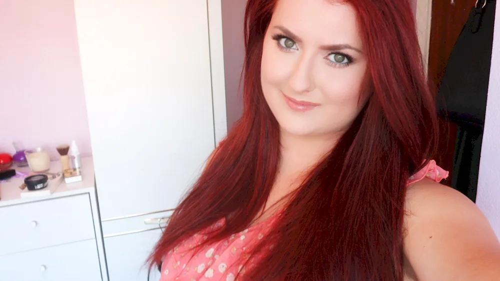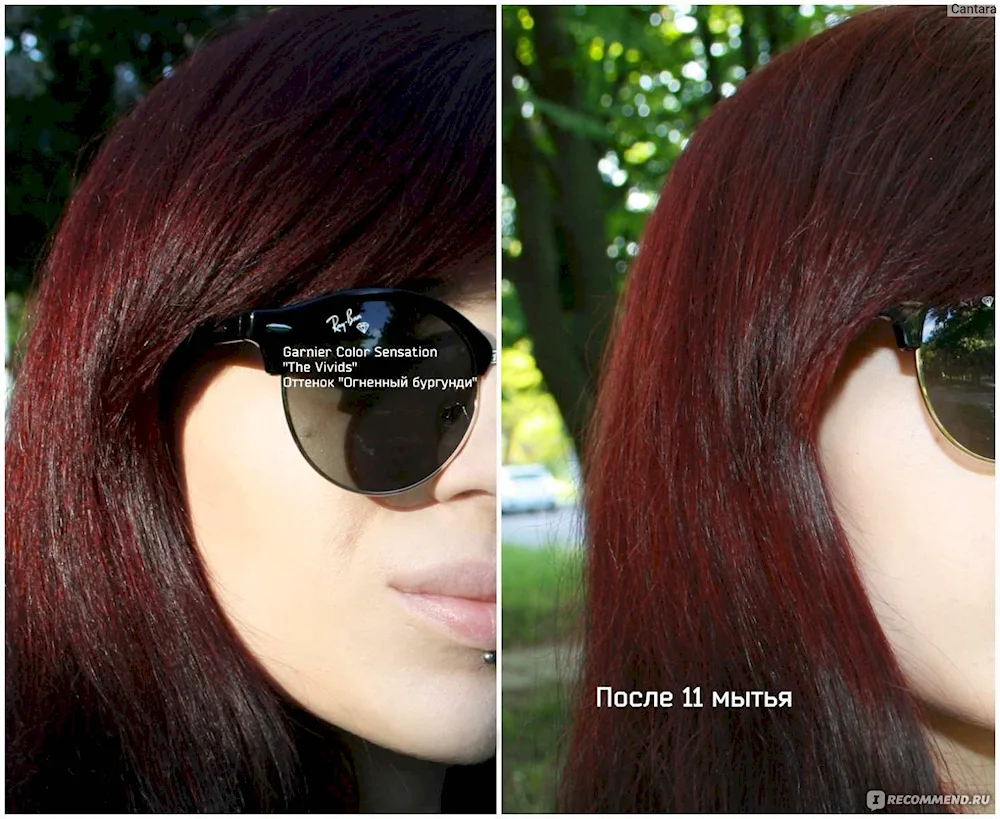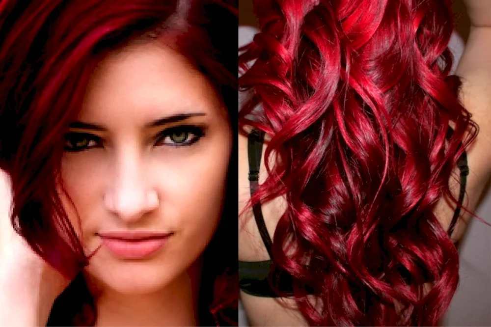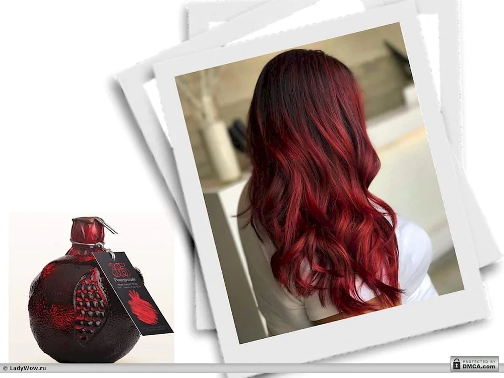 Garnet hair dye Photos of vibrant red hair transformed by garnet hair dye, showcasing the rich, deep color and beautiful shine. Images of before and after results, demonstrating the dramatic change and stunning impact of using garnet hair dye.