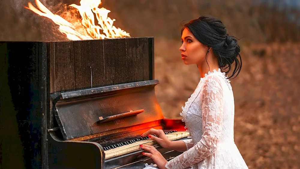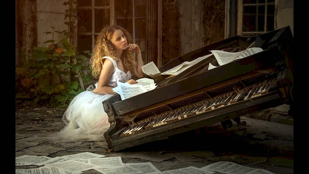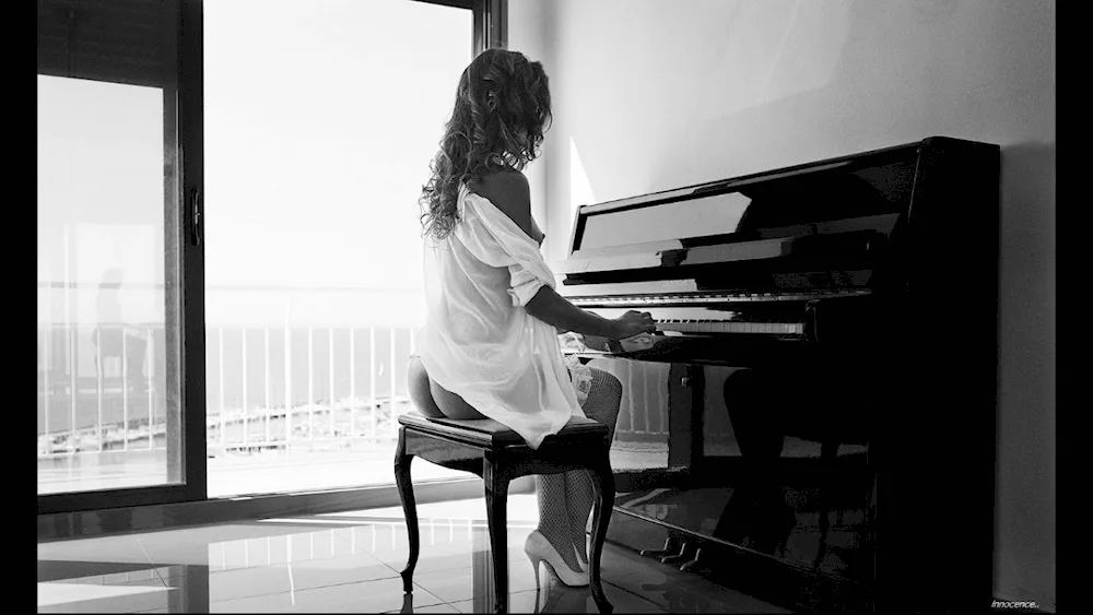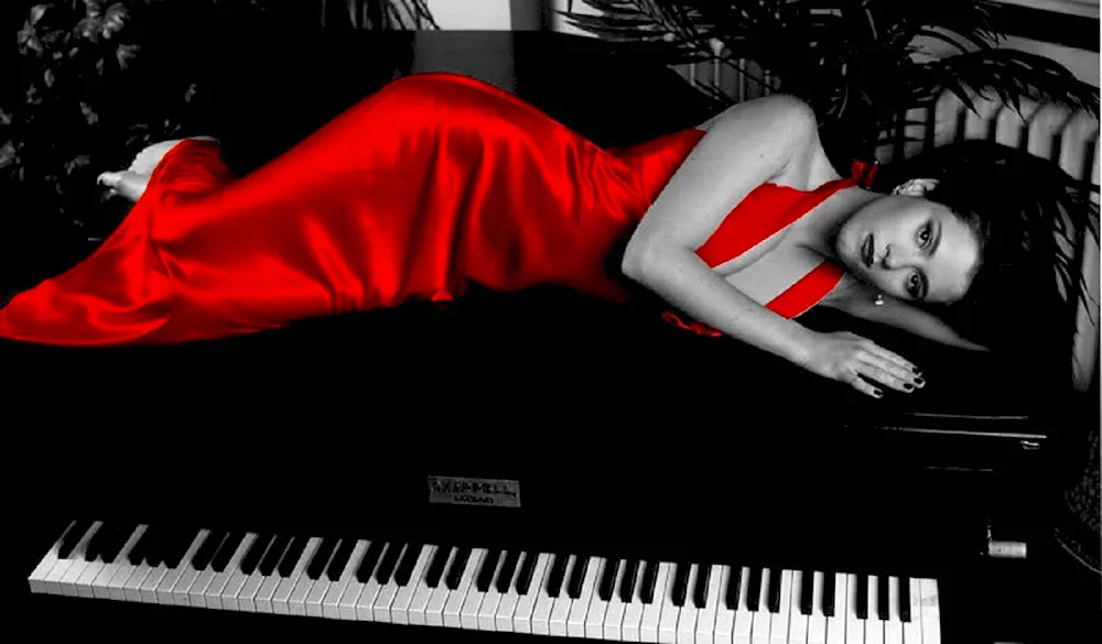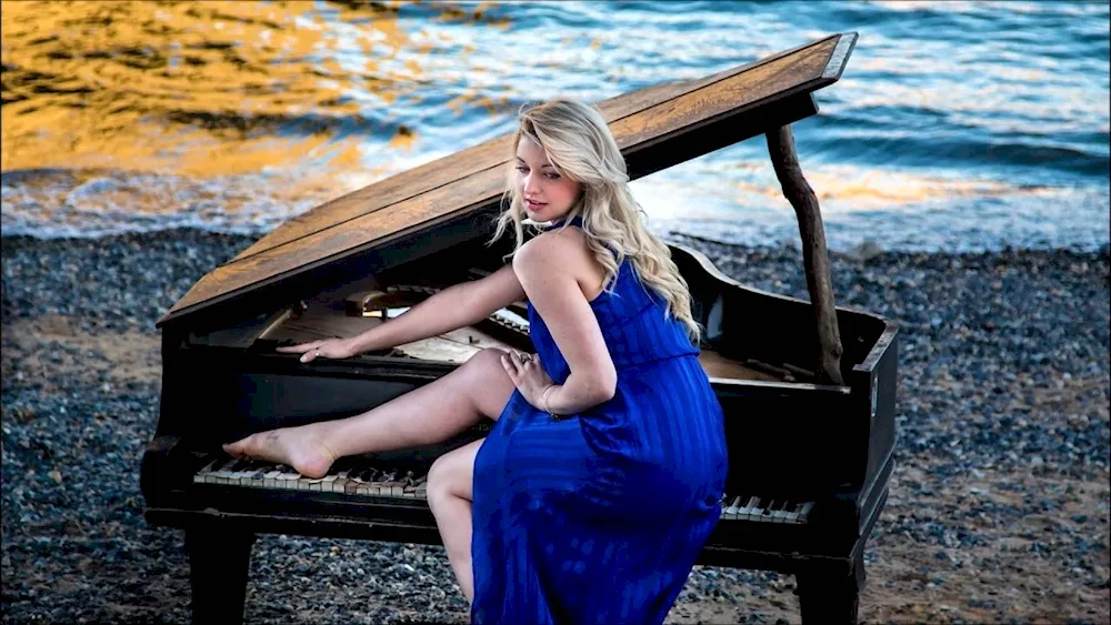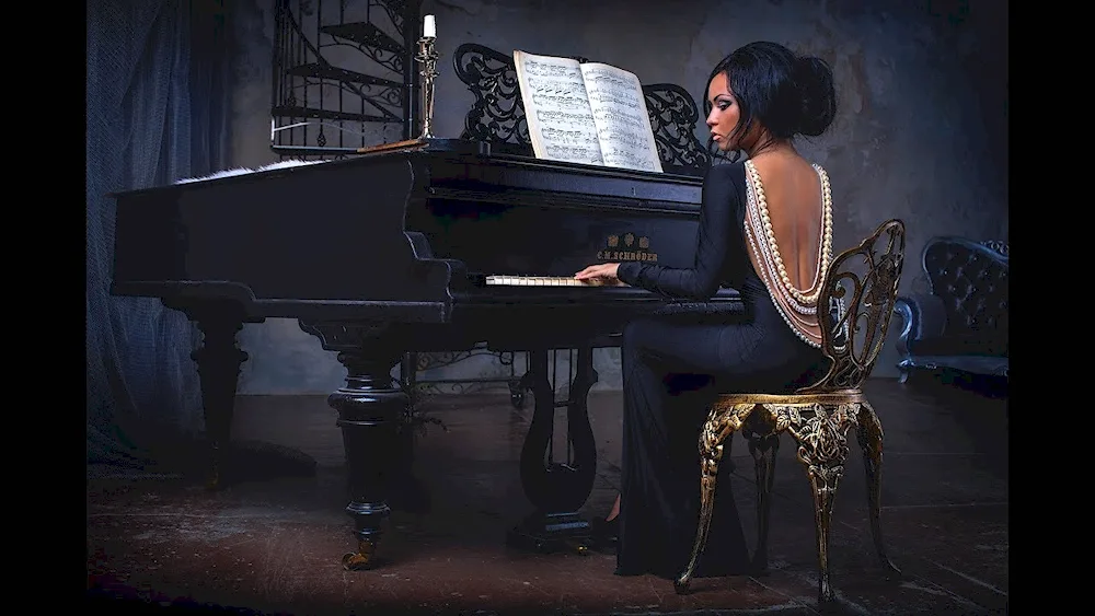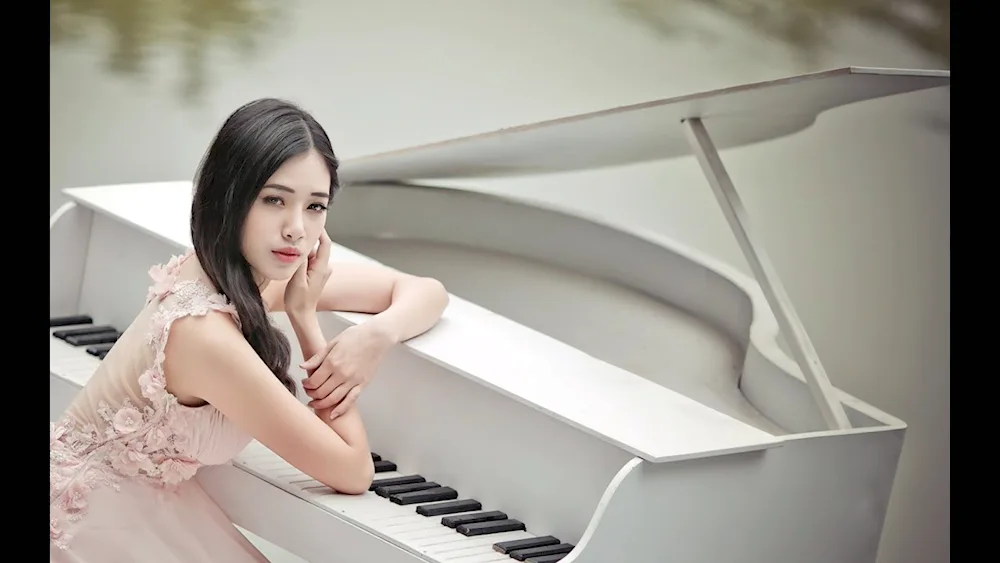 Girls with a piano Collection of images featuring young women posing elegantly next to a grand piano, showcasing their musical talent and grace. These photos capture the beauty and poise of female musicians as they play and express themselves through music.