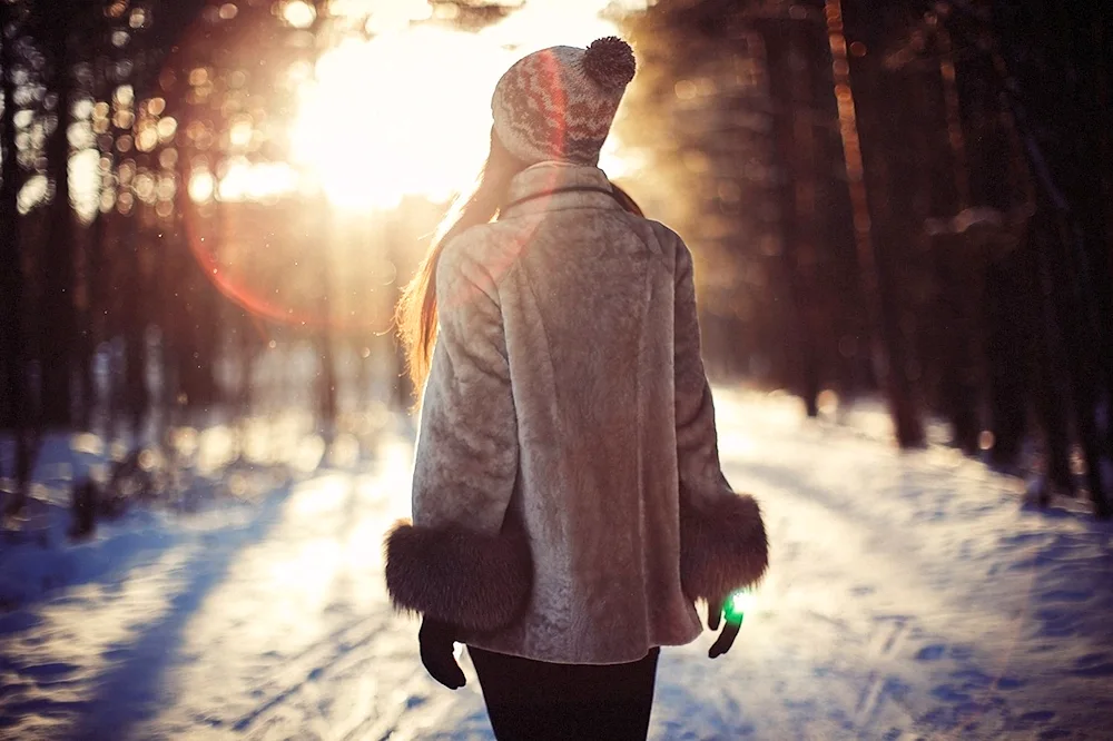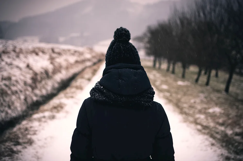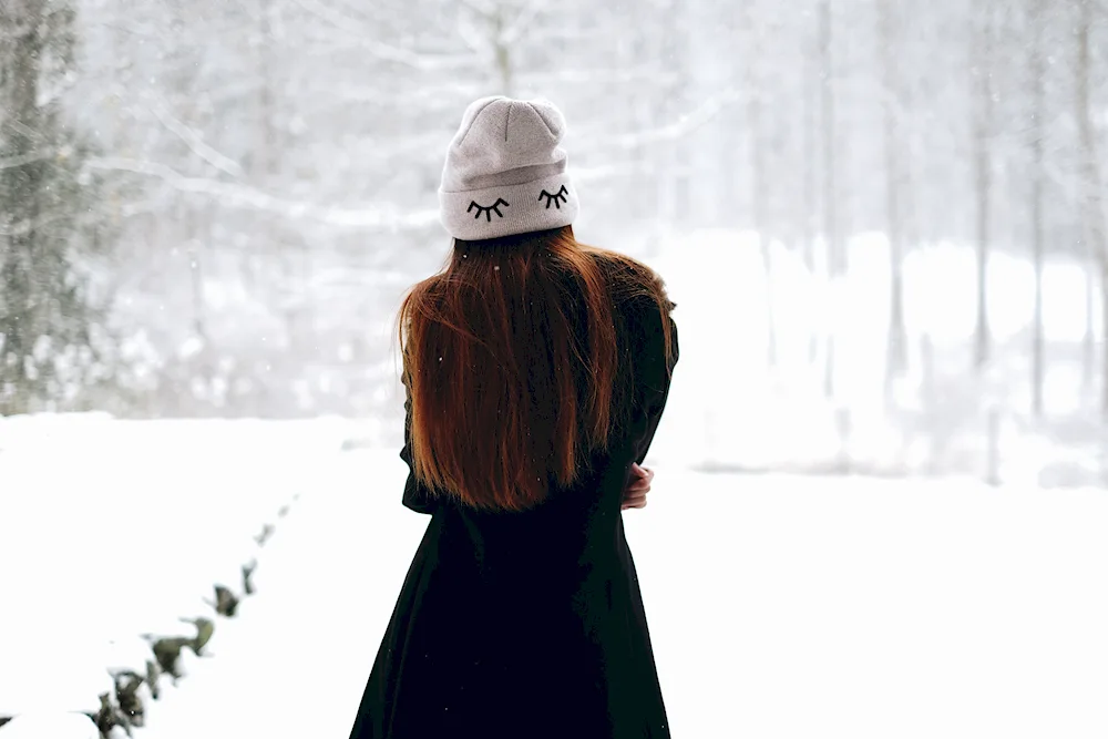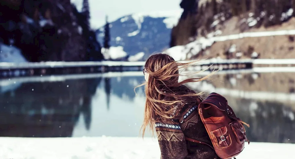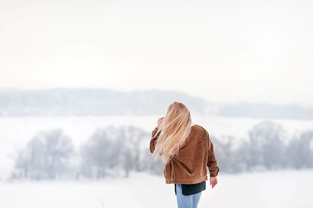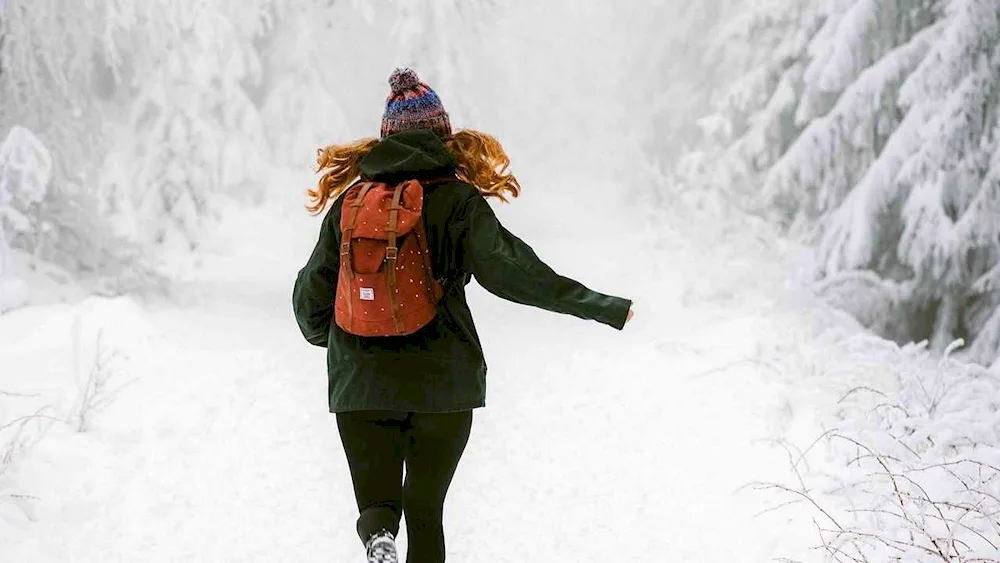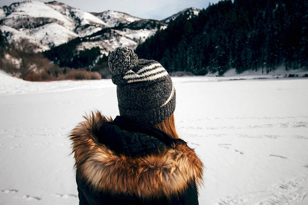 Girls with their backs in winter Photos of girls facing away from the camera in the winter snow, their colorful jackets contrasting with the white landscape. The images capture the quiet beauty and solitude of the winter season, with the girls appearing contemplative and serene.