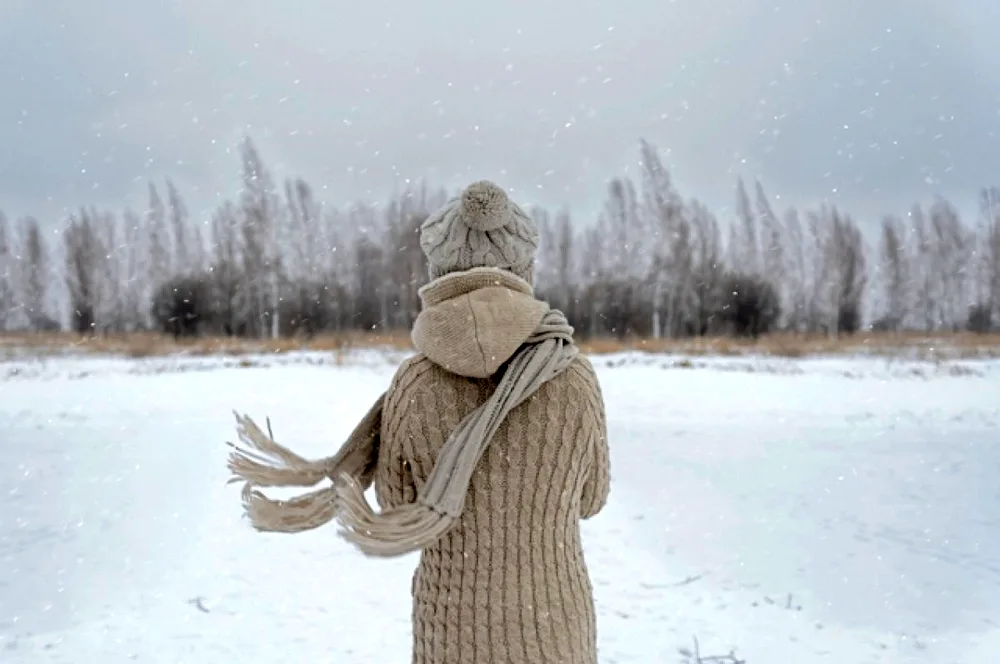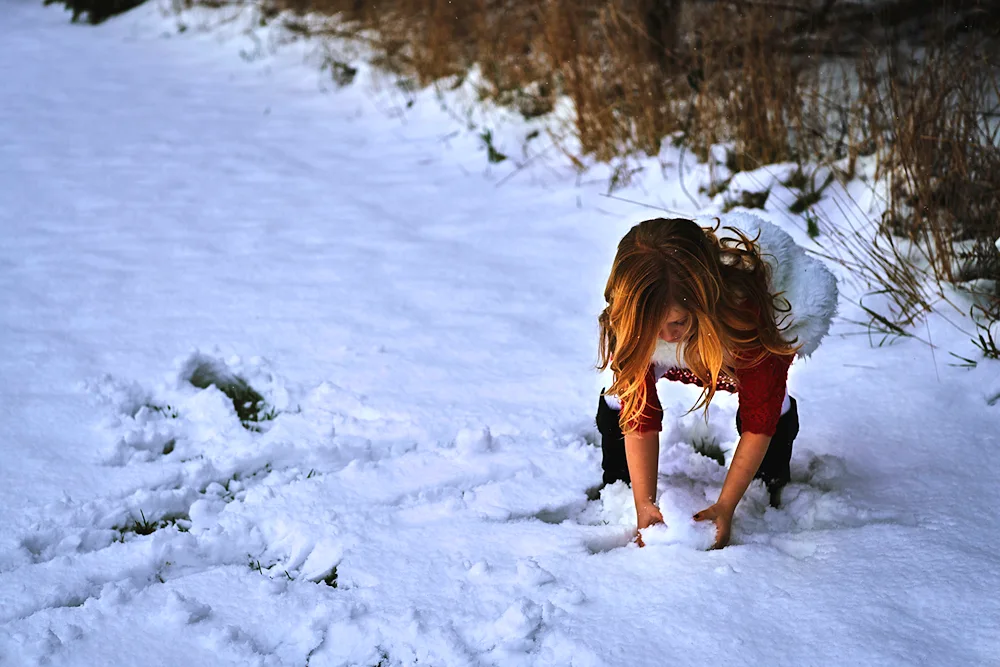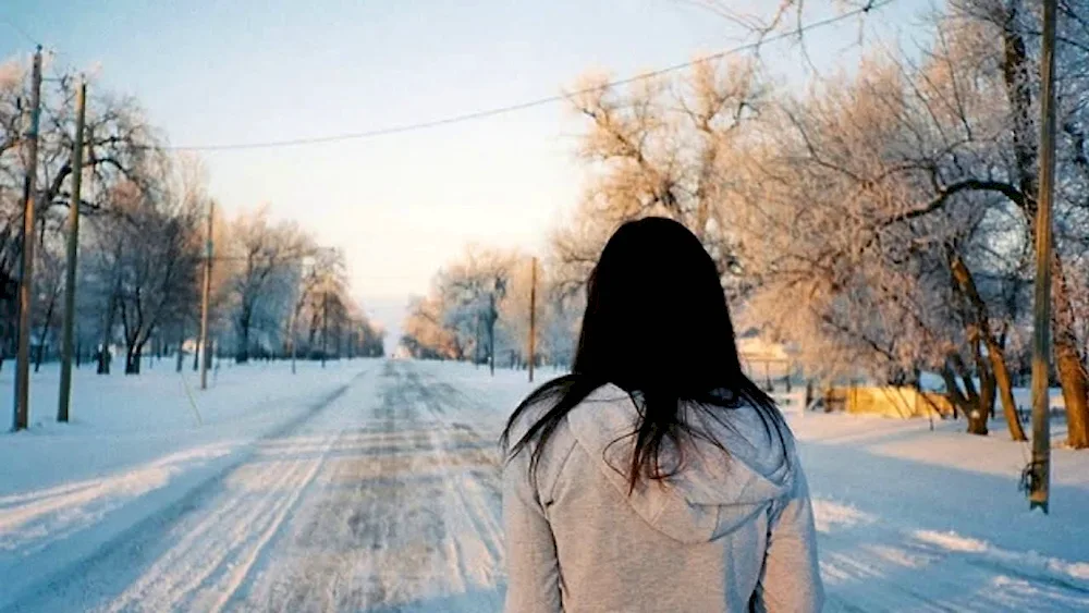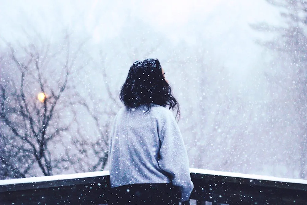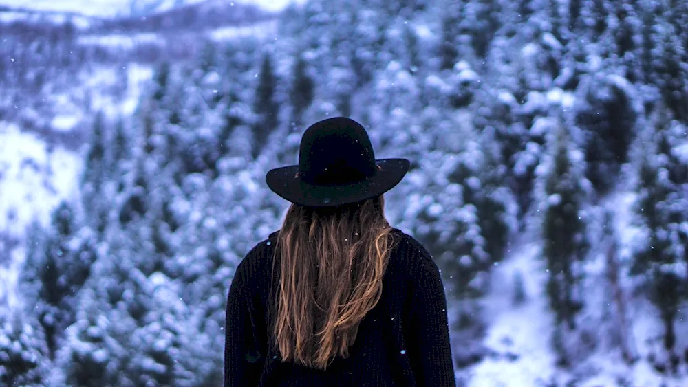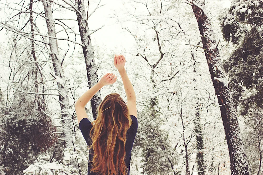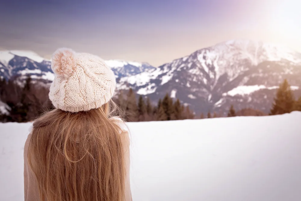 Girls with their backs in winter Photos of girls facing away from the camera in the winter snow, their colorful jackets contrasting with the white landscape. The images capture the quiet beauty and solitude of the winter season, with the girls appearing contemplative and serene.