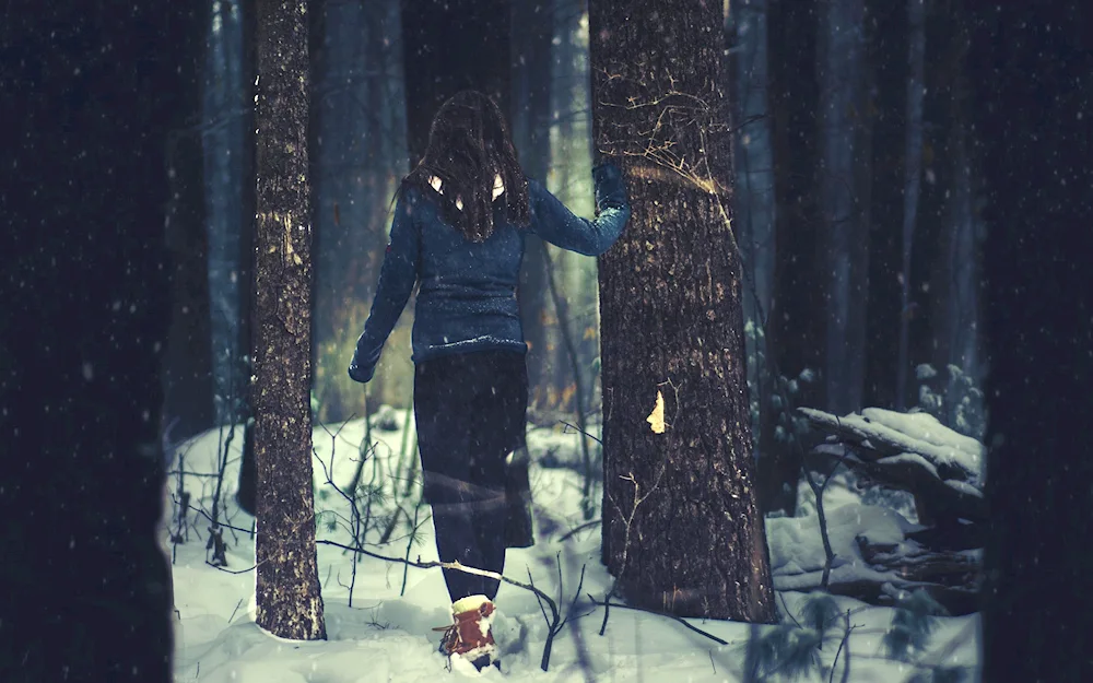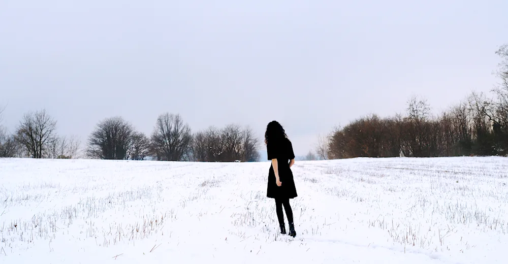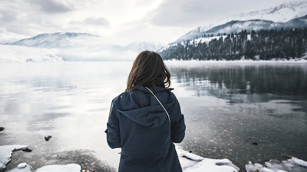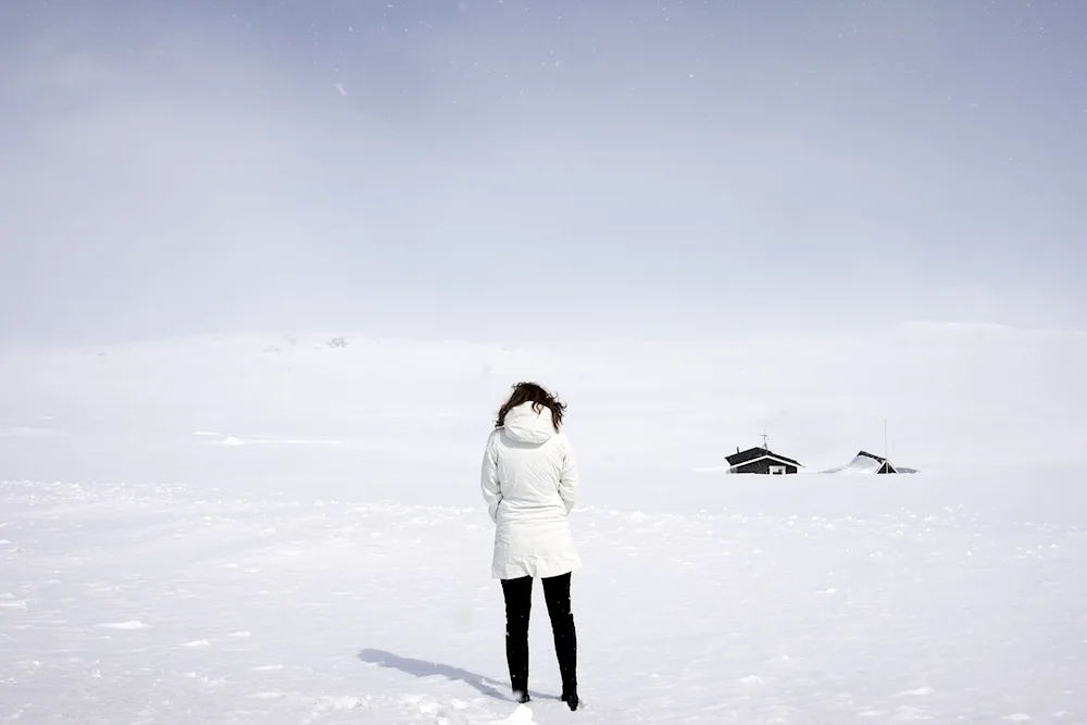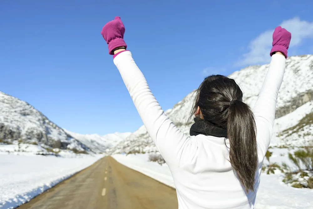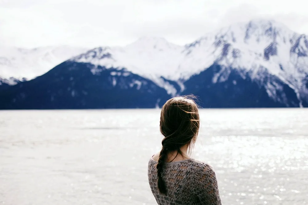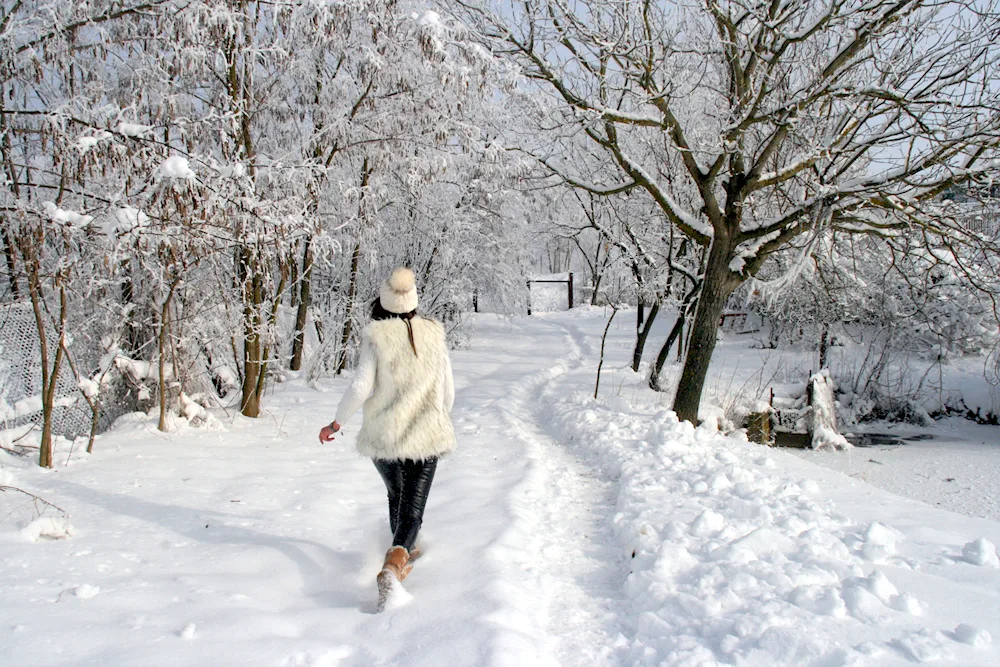 Girls with their backs in winter Photos of girls facing away from the camera in the winter snow, their colorful jackets contrasting with the white landscape. The images capture the quiet beauty and solitude of the winter season, with the girls appearing contemplative and serene.