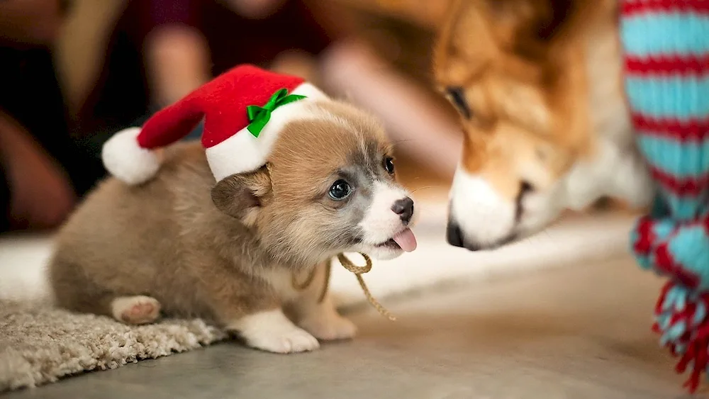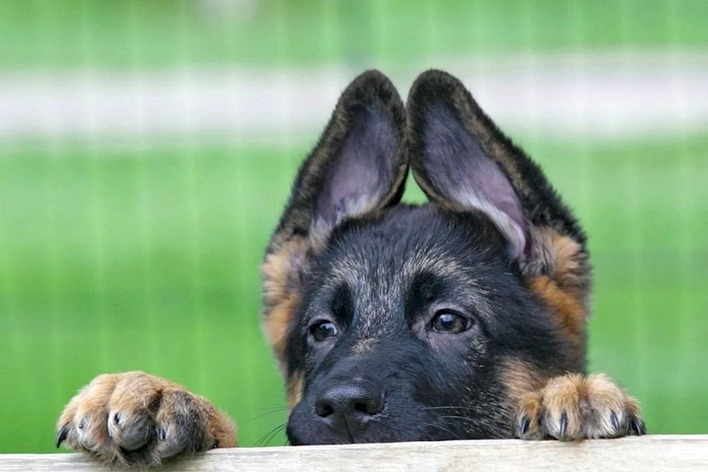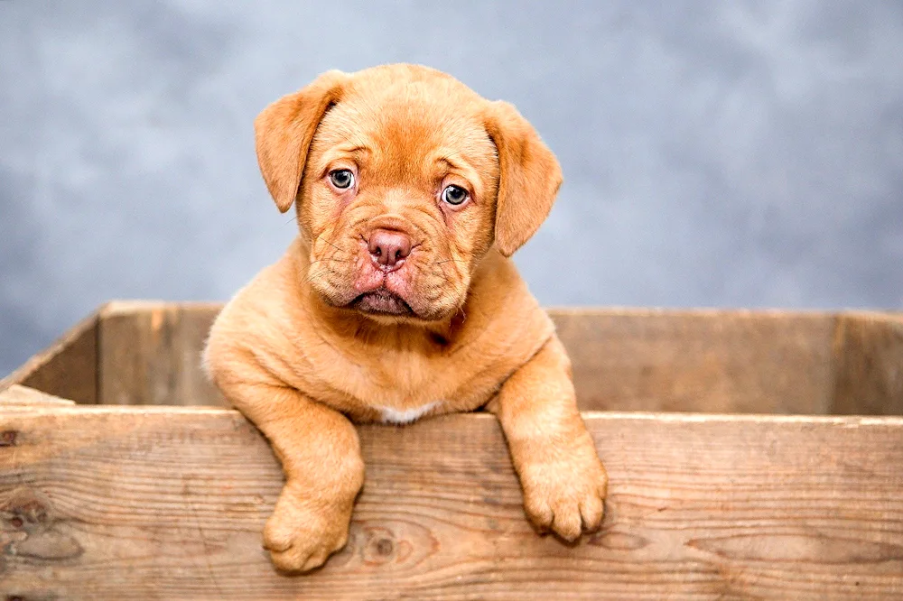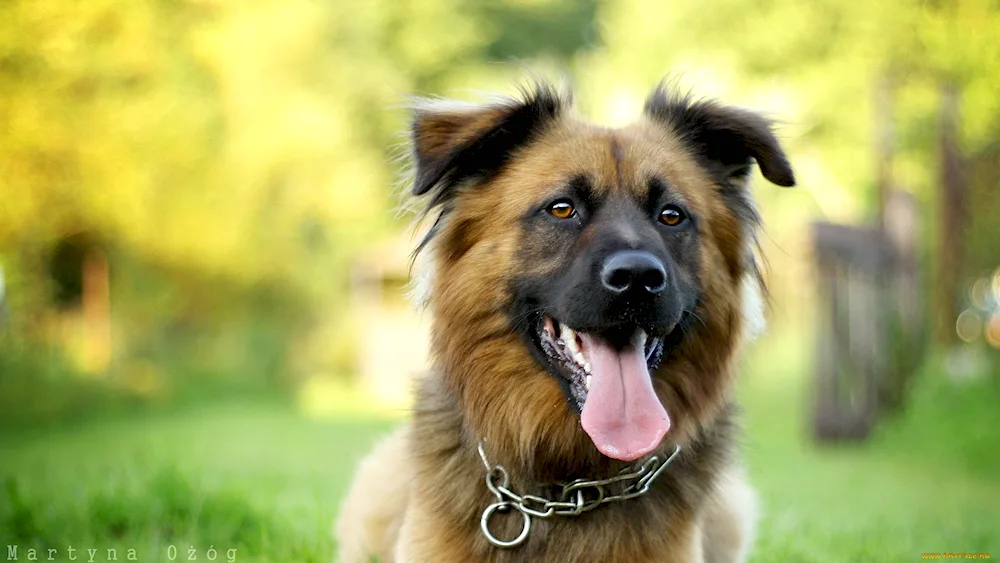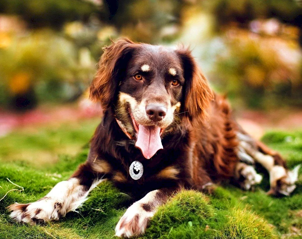 Good dog Cute pup posing in a meadow with a big smile on its face, tail wagging happily. A loyal dog sitting next to its owner, looking up adoringly with big, soulful eyes.