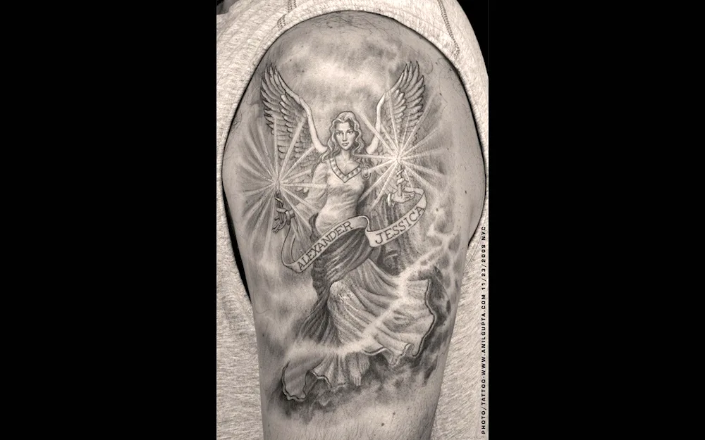 Guardian Angel Tattoo For Men Check out these stunning tattoo designs of guardian angels specifically for men. The intricate details and powerful imagery capture the essence of protection and guidance. Perfect for anyone looking for a meaningful and symbolic tattoo.
