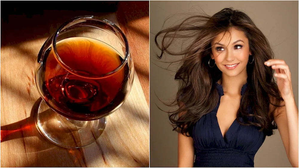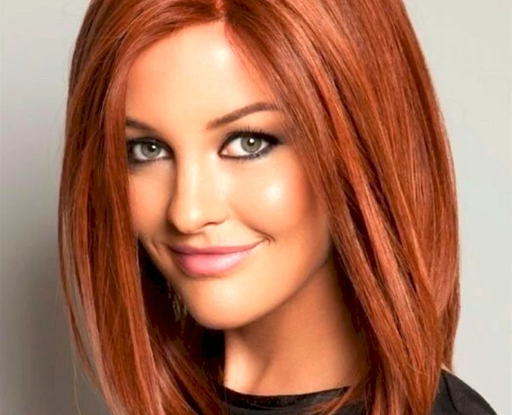 Cognac hair color in a sleek, straight bob with warm undertones perfect for autumn. Images of women with luscious, long hair in shades of cognac, ranging from deep rich browns to subtle hints of red.