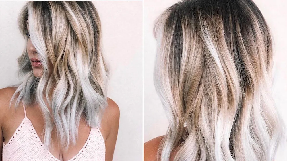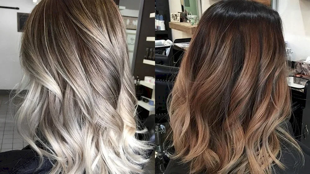 Collection of images showcasing beautiful balayage hair coloring on light hair tones, perfect for those looking for a natural and sun-kissed look. These photos feature soft blends of colors creating a seamless and effortless hairstyle for any season.
