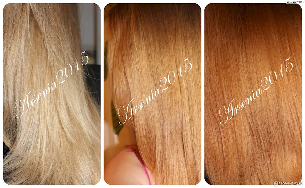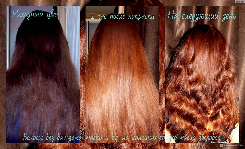 Hair dyeing with henna before and after