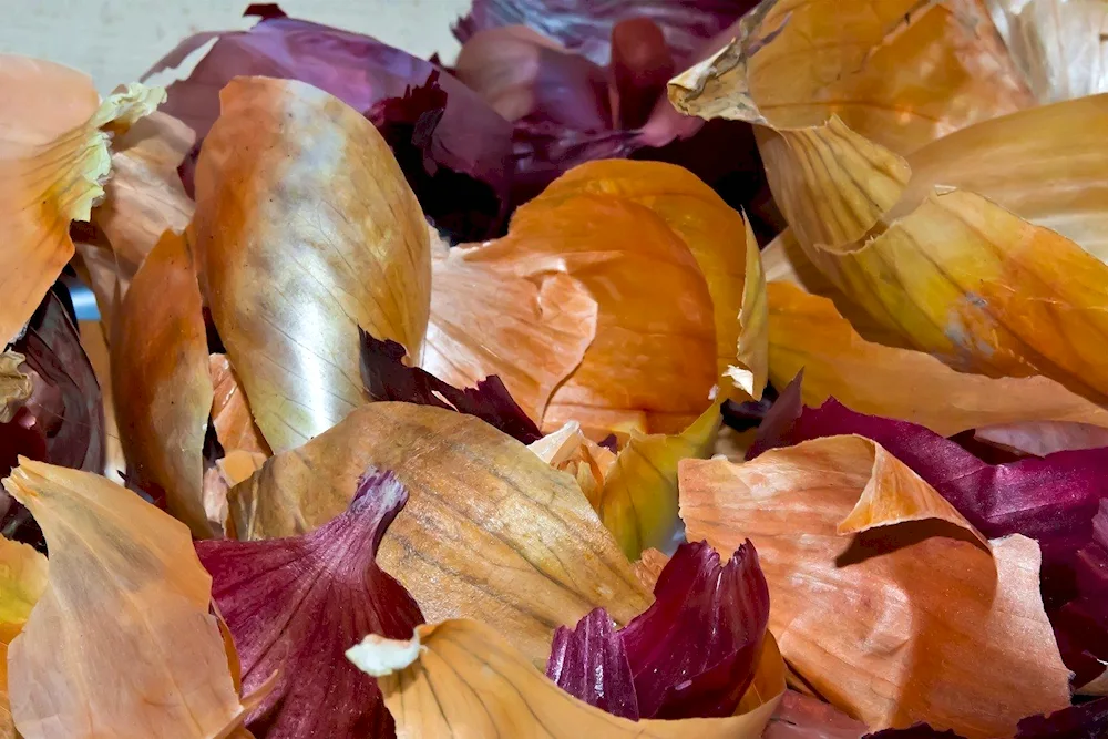 Onion hair dyeing with onion husk. Onion husk dyeing for fabric with onion husk