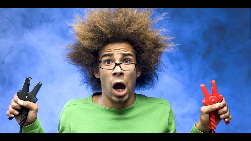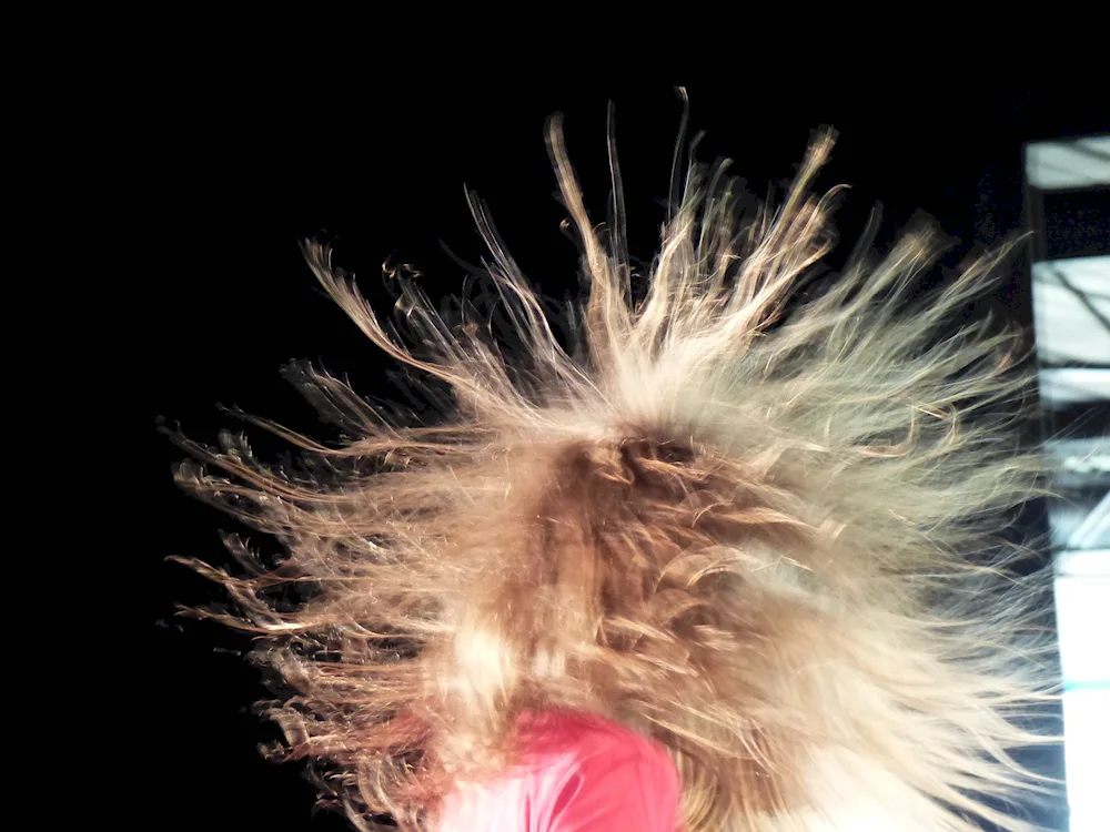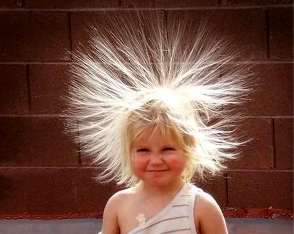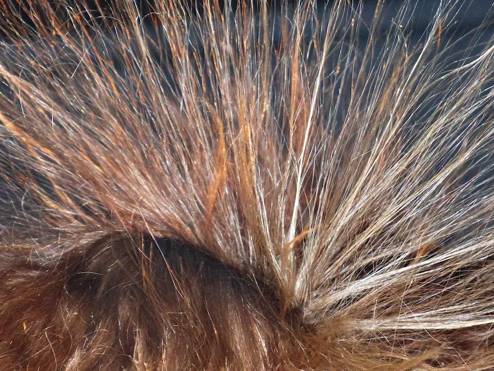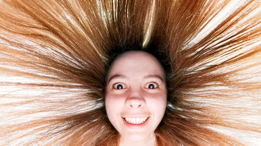 Images of hair standing straight up in fear or excitement, creating a dramatic and eye-catching appearance. Some pictures show animals with their fur standing on end, adding a touch of wildness and intensity to the scene.
