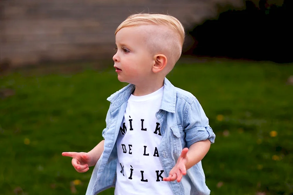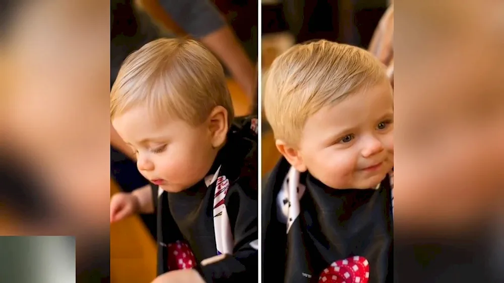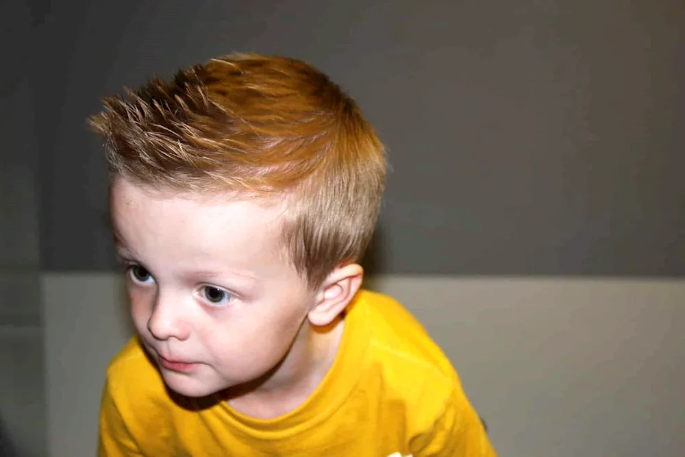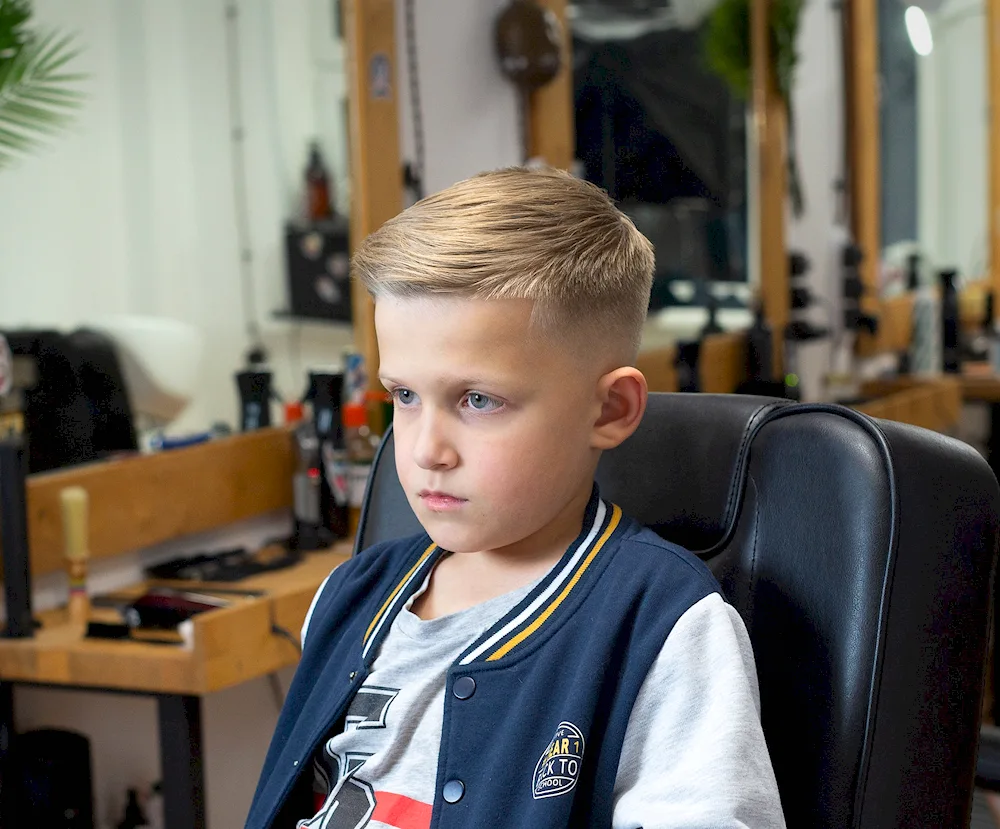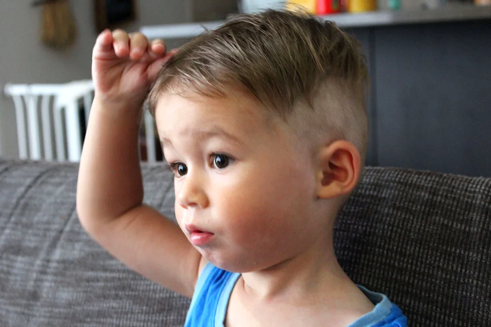 Haircut for a 2 year old boy Photos of adorable 2-year-old boys getting their first haircut, with big smiles and sitting on special barber chairs. Images showing little boys with fresh new haircuts, looking cute and stylish for the first time.