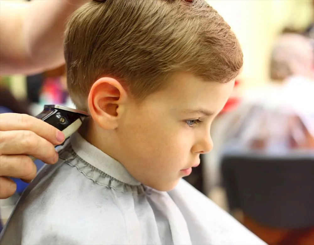 Haircut for a 3 year old boy Photos of a cute toddler getting his first haircut, with a professional hairstylist using scissors and clippers. The little boy looks happy and excited during the whole process, resulting in a stylish and trendy new look for him.