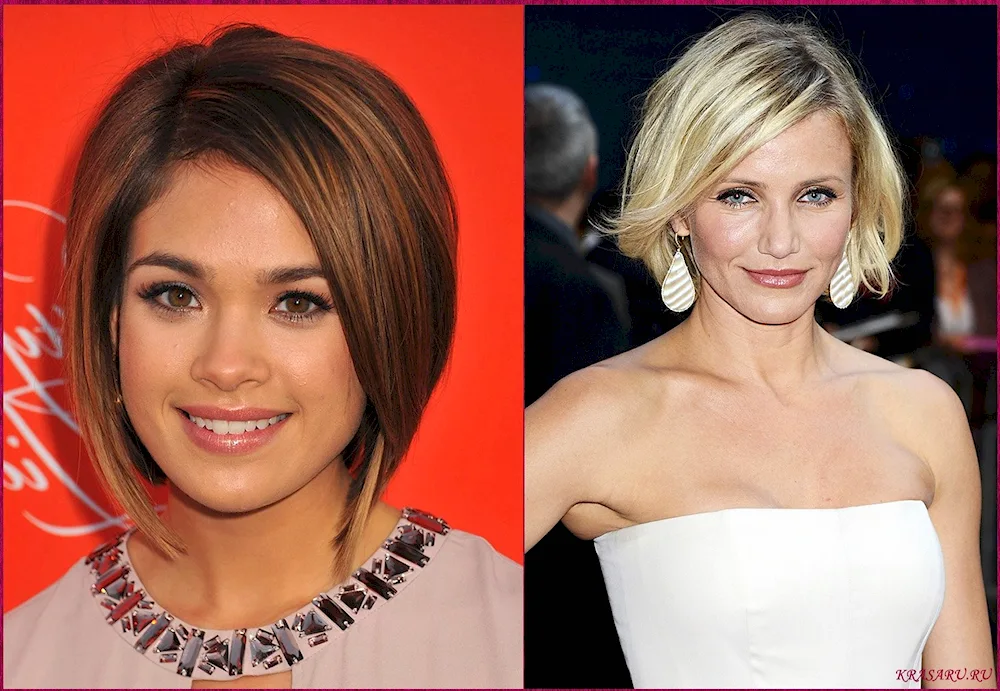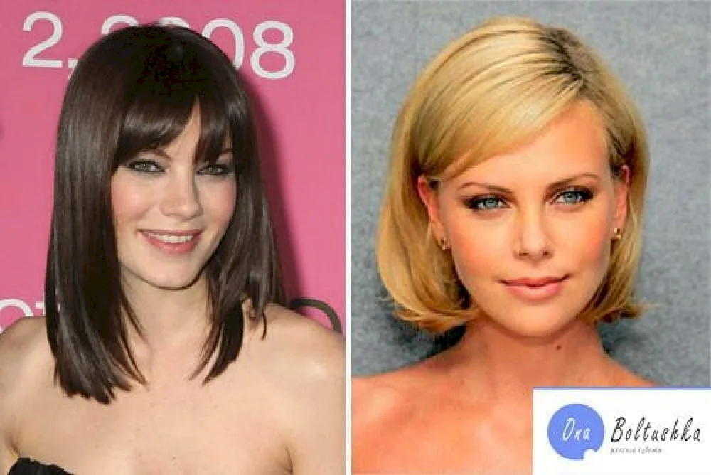 Hairstyles to flatter your long face shape: sleek center part with layers for added volume, side-swept bangs to shorten the face visually, and a shoulder-length bob to create width and balance. Check out these images for inspiration on how to enhance your unique features with the right haircut!