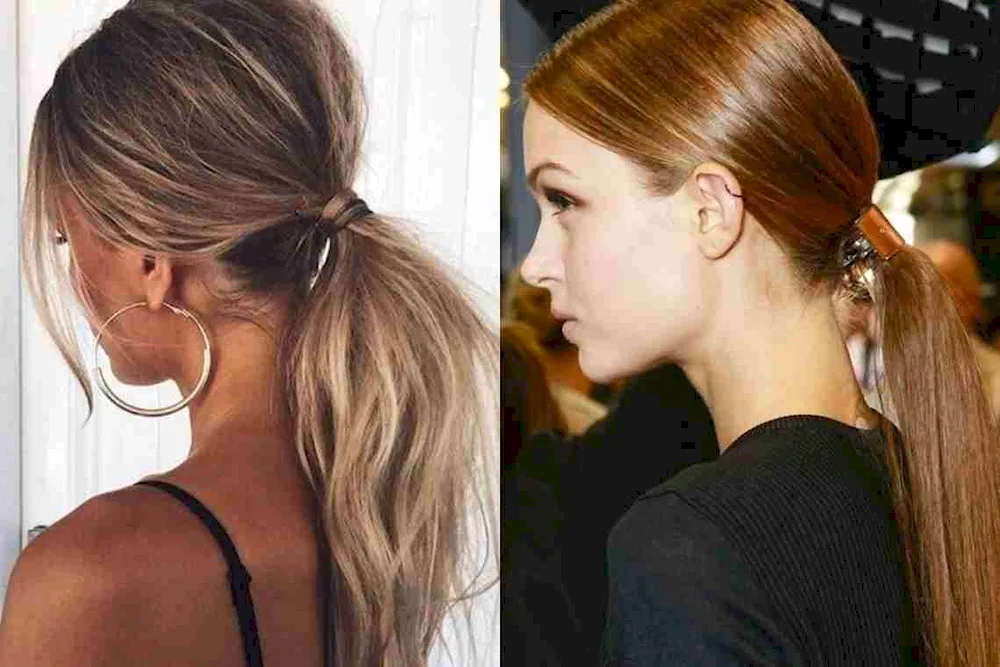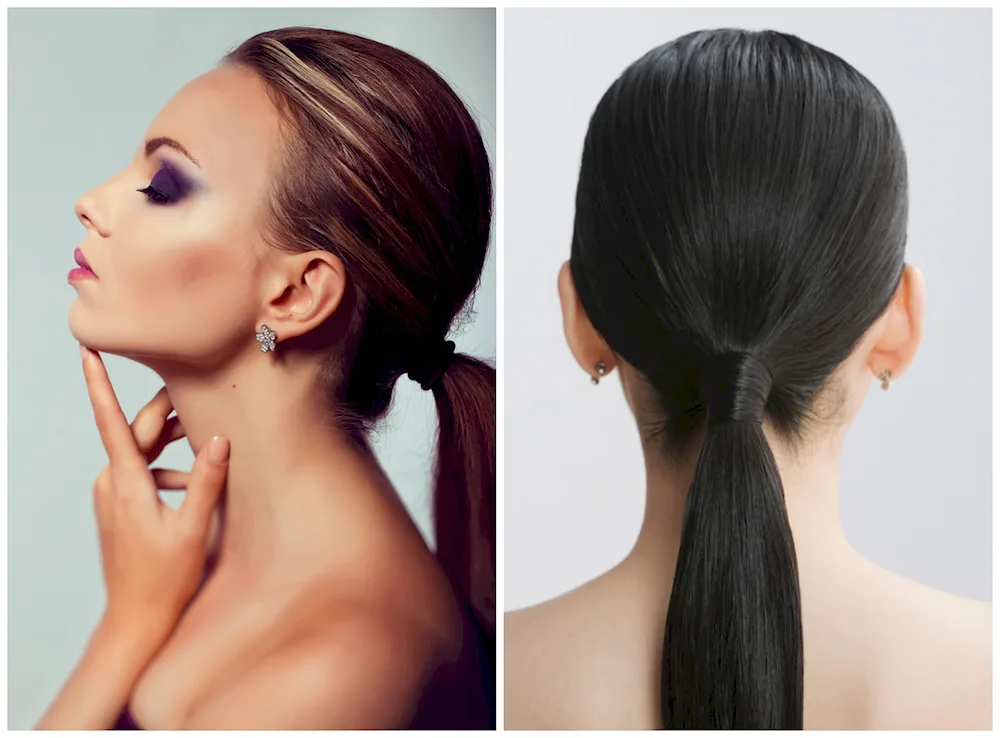 Hairstyle collected ponytail Check out these stylish hair ideas with ponytails gathered at the back for a sleek and polished look. The photos showcase various ways to wear this classic hairstyle, perfect for any occasion.
