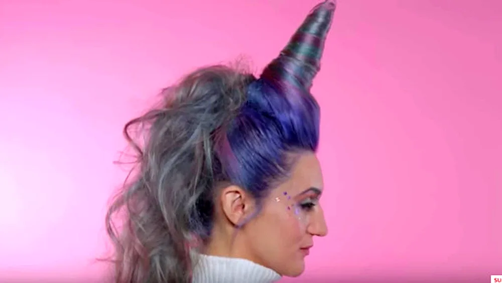 Photos of different hairstyles featuring horn-like shapes made out of hair strands, giving a unique and edgy look to the wearer. These images showcase the creativity and skill of hairstylists in creating unconventional and eye-catching hair designs.