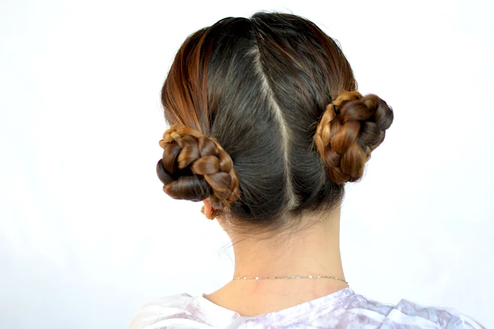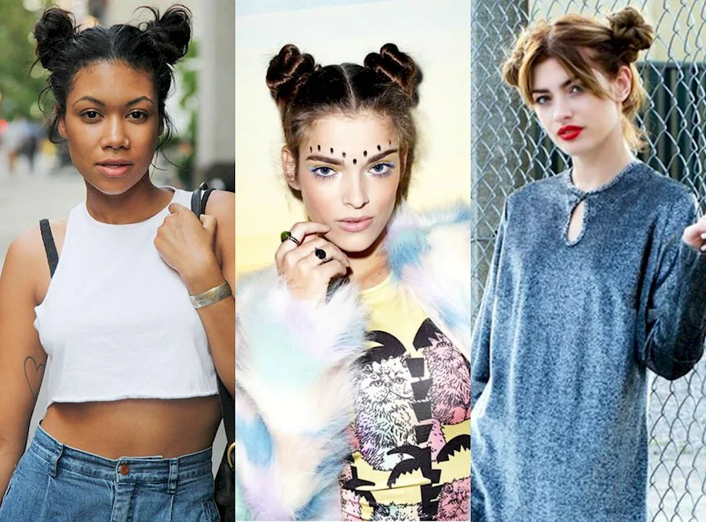 Hairstyle with two buns. Mickey Mouse ears hairstyle
