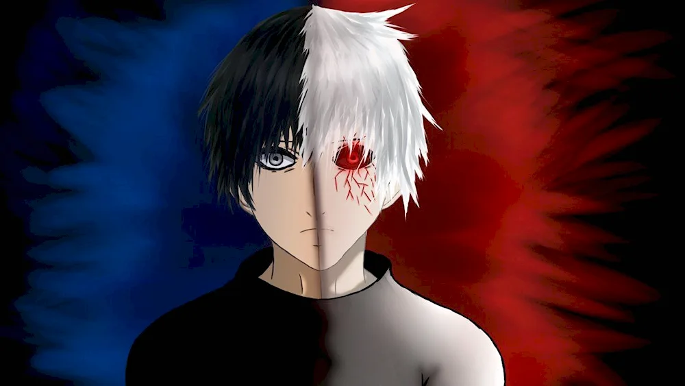 Photos of haircuts similar to Kaneki's signature style, featuring white and black color combinations, faded sides, and textured top layers. Explore different angles and styling options to recreate this iconic look at home or with a professional stylist.