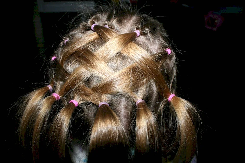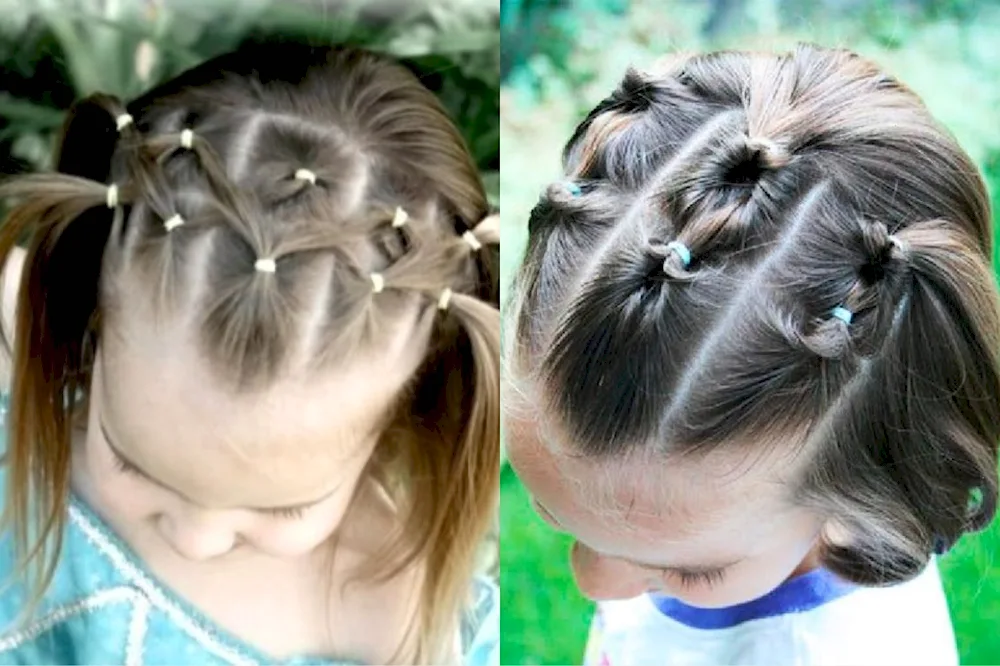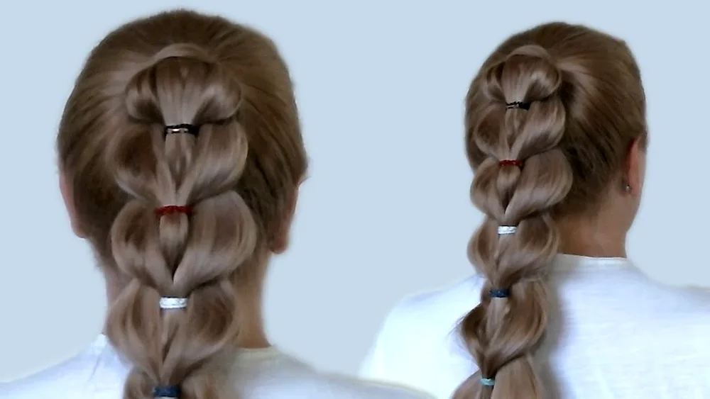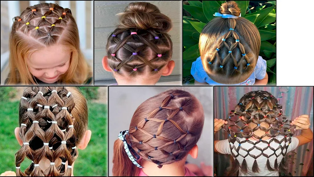 Check out these images of trendy hairdos styled with tiny elastic bands! You'll see various looks like braided ponytails, space buns, and intricate updos, all featuring these cute little hair ties. Perfect inspiration for your next hairstyle!