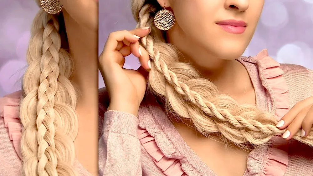 Hairstyle with two braids Check out these photos of a cute hairstyle featuring two braids - perfect for a casual and trendy look! You'll love how easy this style is to recreate at home.