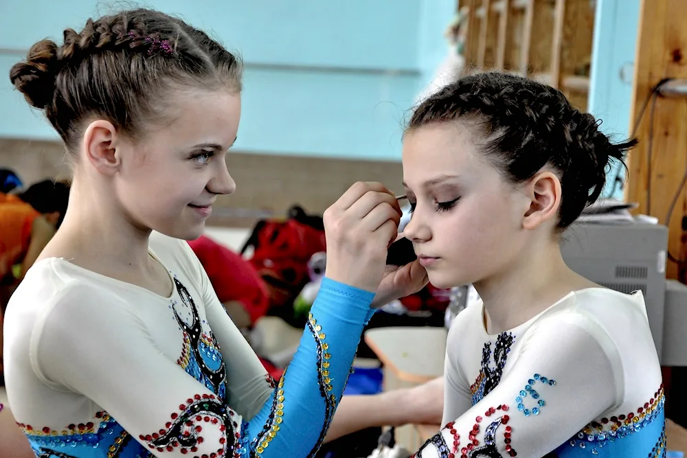 Hairstyle for rhythmic gymnastics. rhythmic gymnastics