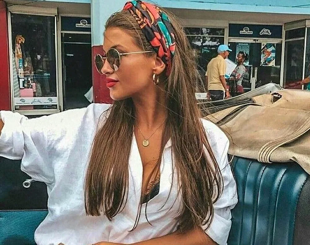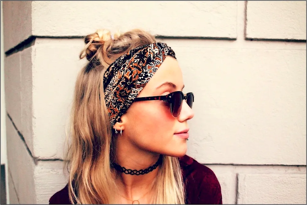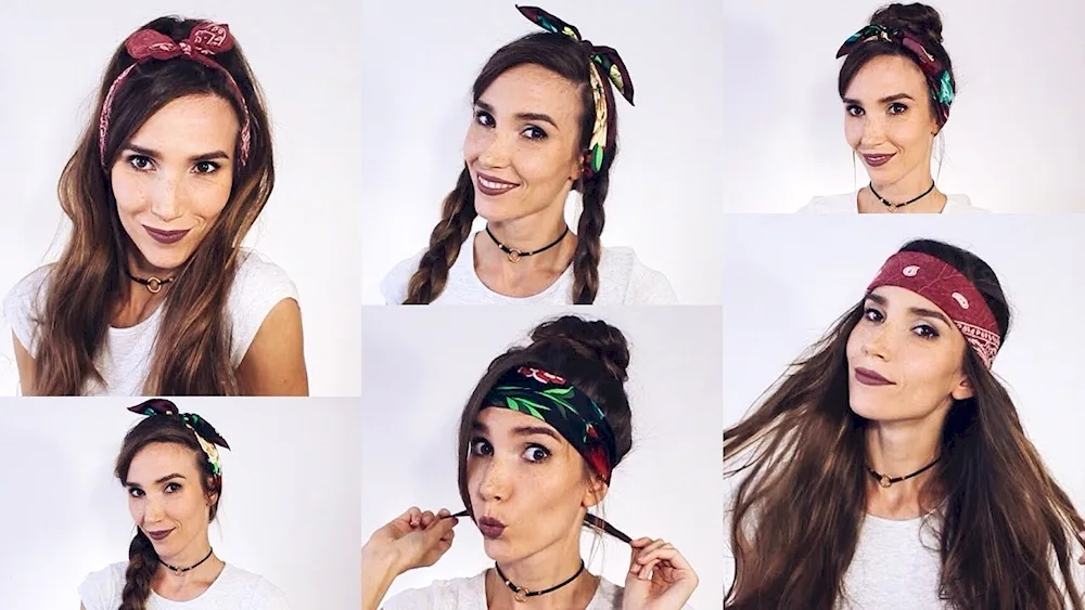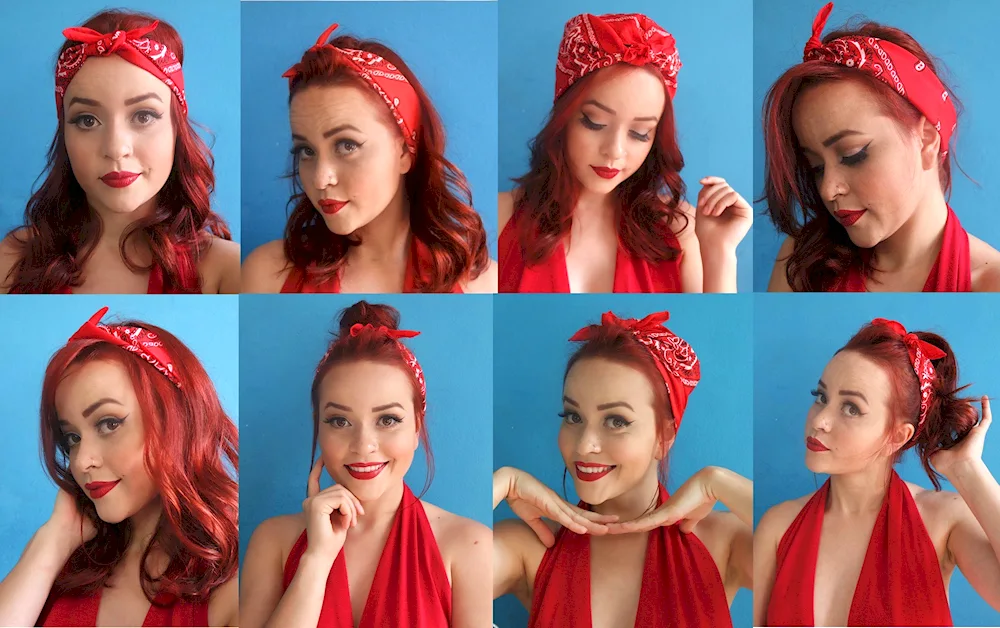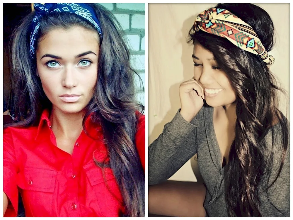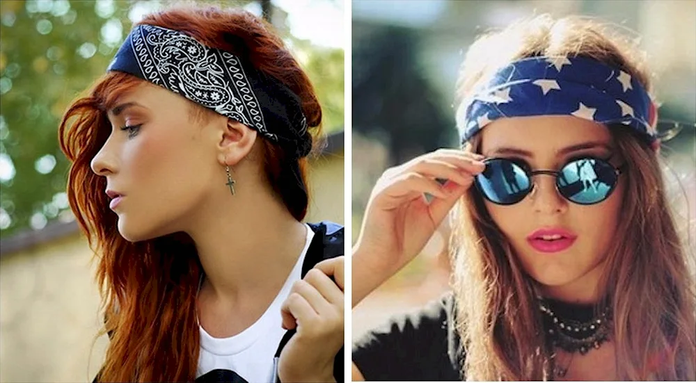 Long hair inspiration with bandanas - from boho chic looks to rockabilly styles, these photos show creative ways to incorporate bandanas into your hairstyles for a fun and trendy look. Experiment with braids, messy buns, and retro waves to achieve a unique and stylish hairdo.