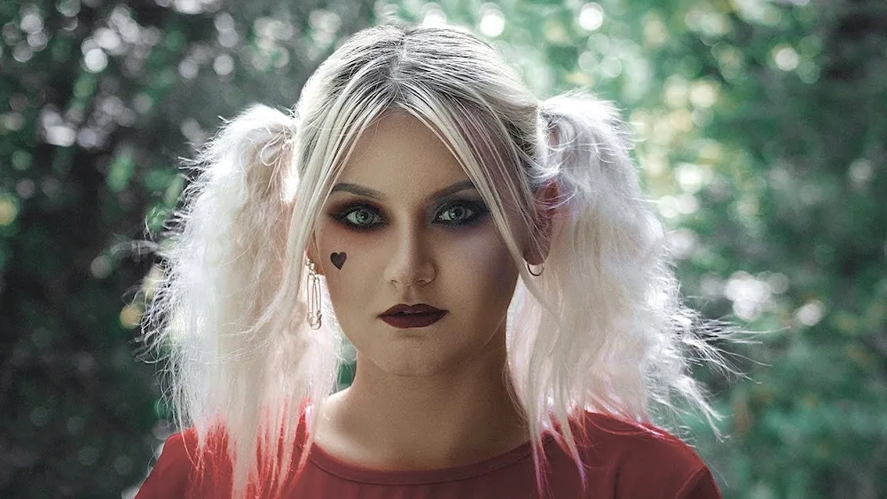 Harley Quinn hairstyle Check out these cool images of varying Harley Quinn hairstyles. They range from colorful pigtails to sleek and edgy bobs, perfect for anyone looking to rock a bold and unique look.