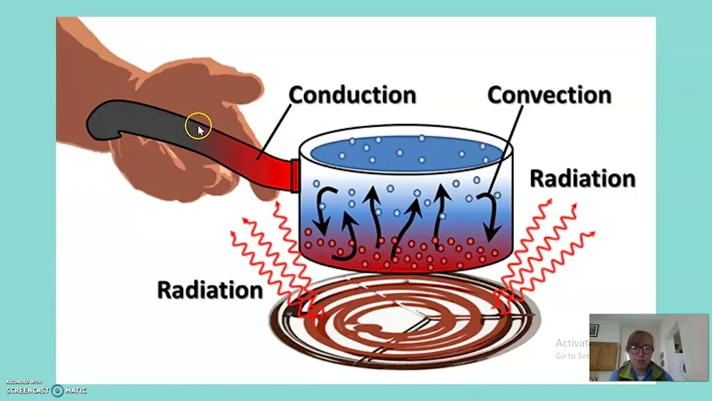 Examples of images showing different methods of transferring heat include a photo of a pot of boiling water on a stove, a diagram of convection currents in the ocean, and an infrared image of a person touching a hot surface. These visuals can help you understand how heat is transferred through conduction, convection, and radiation in various everyday scenarios.