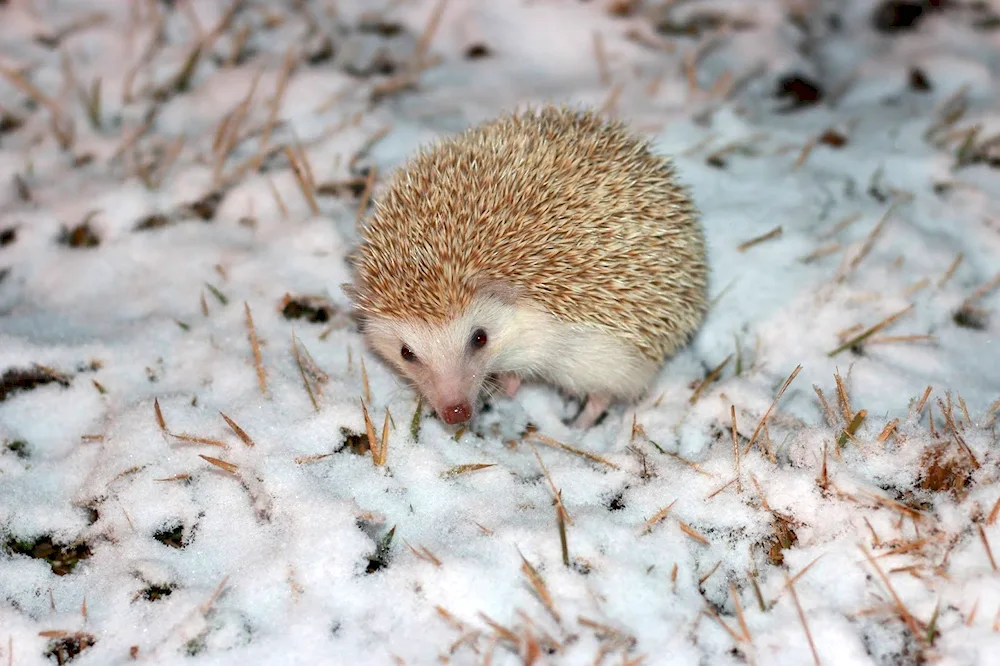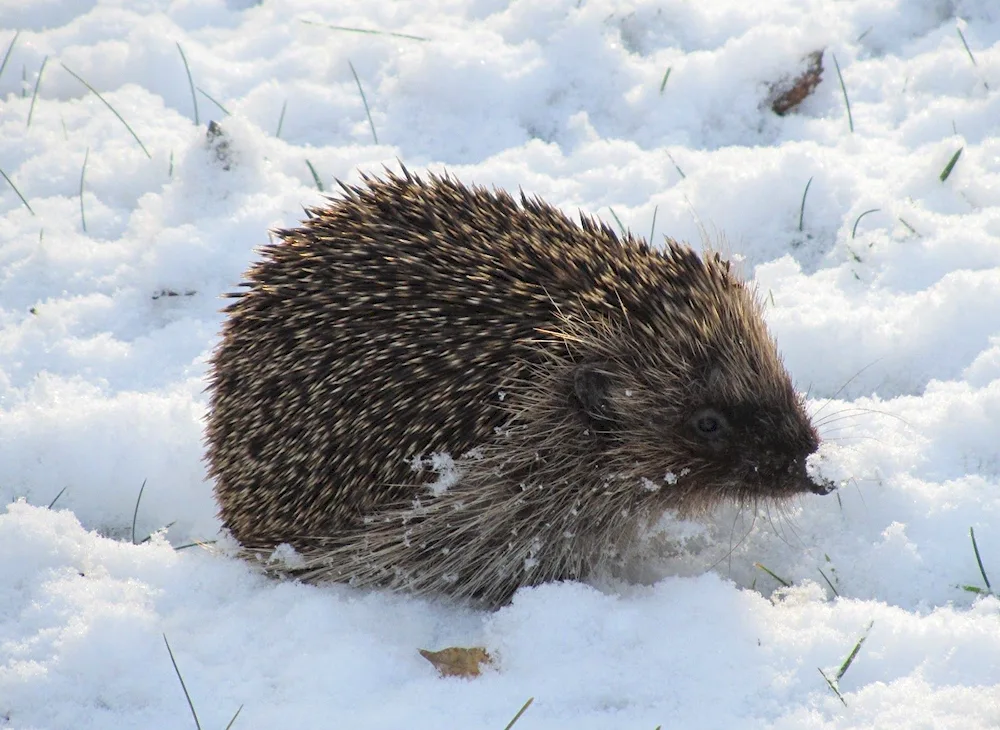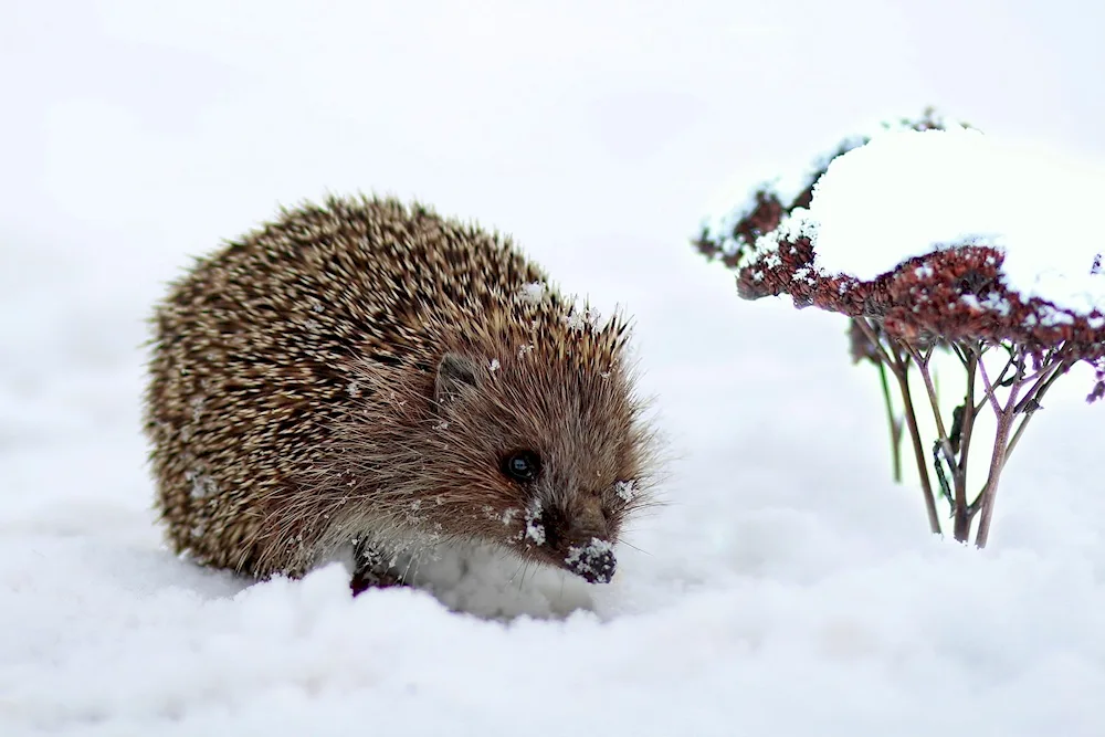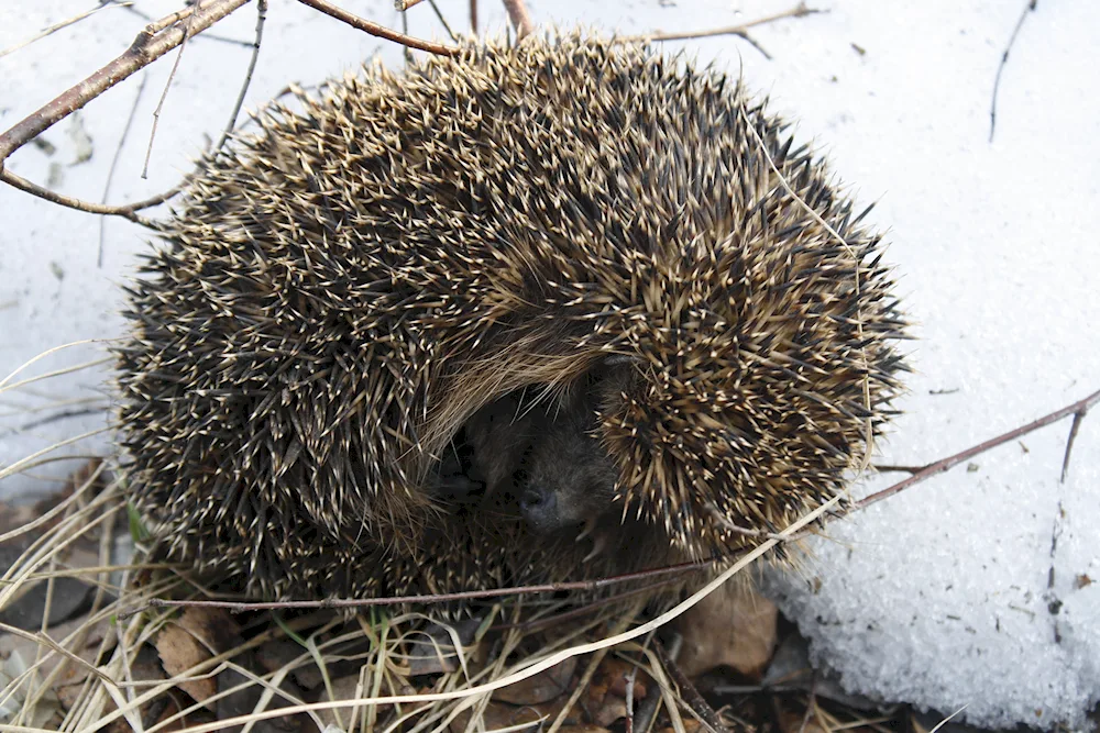Here are some photos of a hedgehog during the winter season. You'll see the cute hedgehog curled up in a cozy ball to stay warm and safe from the cold.