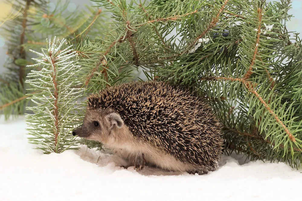 Hedgehog under a Christmas tree