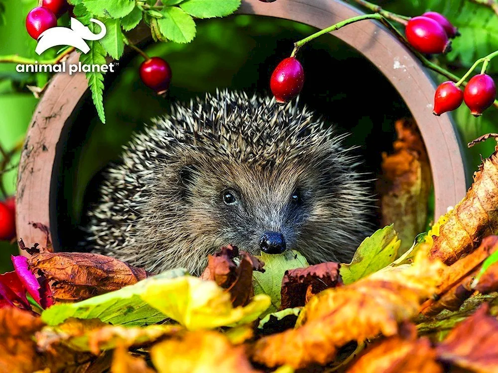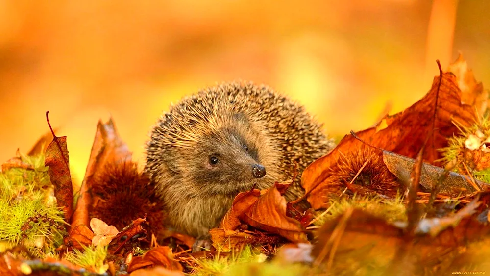 Hedgehog hiding in the autumn forest pictures for children