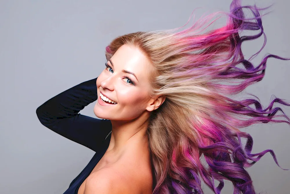 Hidden blond coloring Blonde highlights subtly peeking through dark hair, creating a beautiful hidden blond effect. Soft, natural-looking color that adds dimension and brightness to the overall hairstyle.